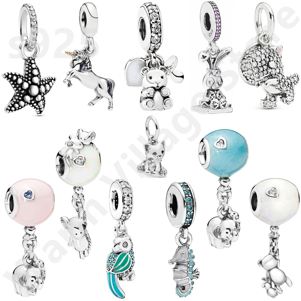 Женские серебряные Очаровательные Подвески, морская лошадь, попугай, морская звезда, единорог, животные, подходят для оригинальных очаровательных браслетов, ювелирные изделия