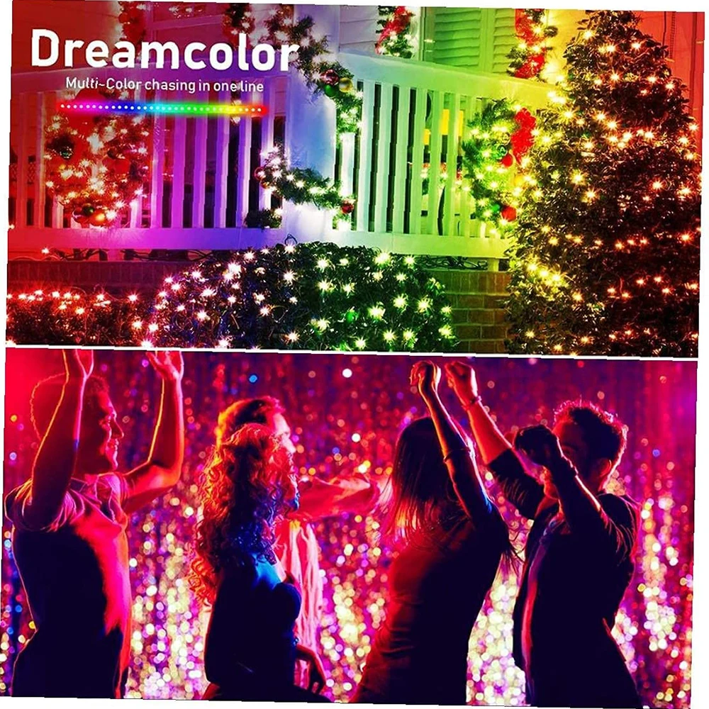 Много видов опциональный светильник мечты цвета, режимы музыки, таймеры, несколько групп режимов изменения цвета, включая челнок, бег, погоня, трек, Потоковое вещание, утечка, флаттер. Вы можете выбрать Предпочтительный режим для различных сцен. Он также оснащен 24-кнопочным инфракрасным дистанционный пульт, 3-кнопочный смарт-контроллер, благодаря чему вы сможете контролировать ваш Рождественские огни в любом месте и в любое время.