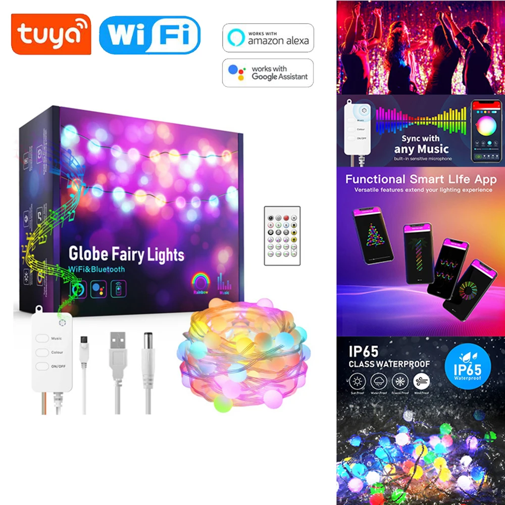 Светодиодные смарт-фонарики Tuya RGB, гирлянда с голосовым управлением и Wi-Fi для рождественской вечеринки, можно использовать с Alexa Google Home