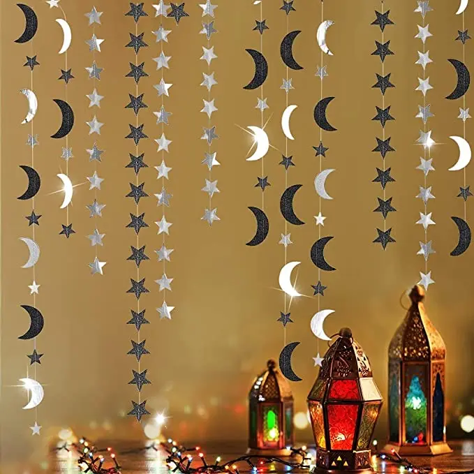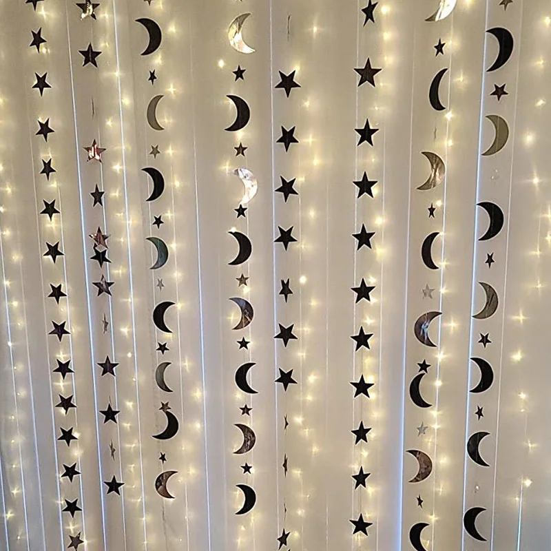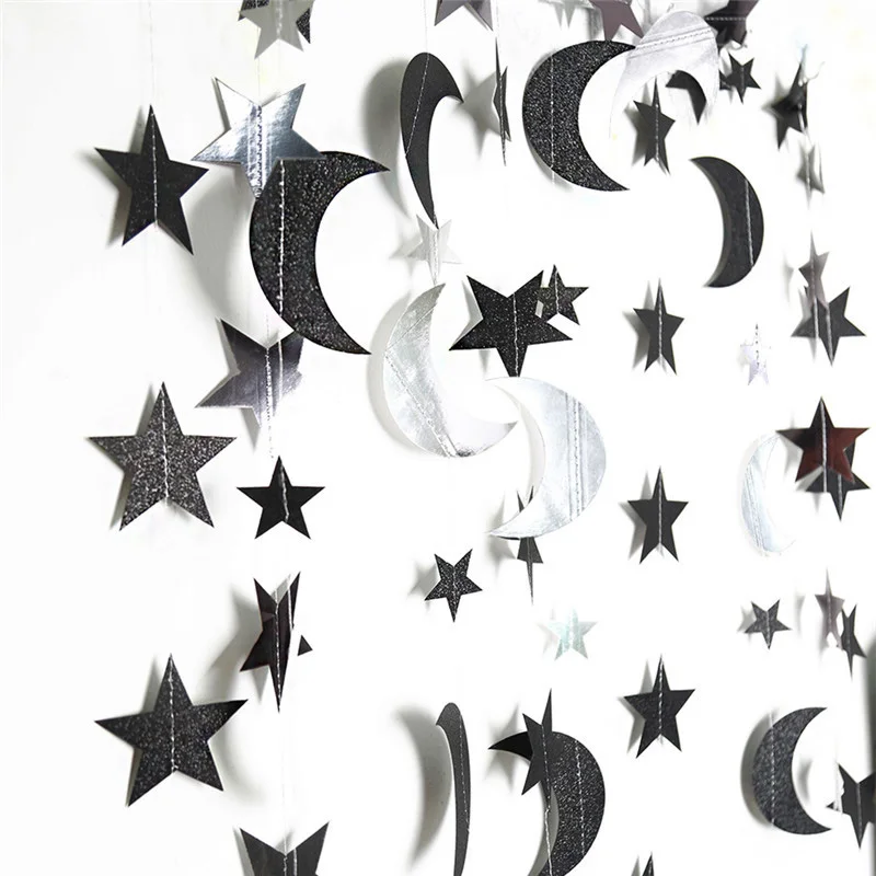 4 м Золотая Звезда Луна гирлянда Висячие звезды растяжки баннер фон для мерцания маленькой звезды День Рождения Вечеринка ИД