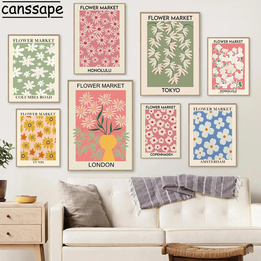 Абстрактные Ретро скандинавские настенные художественные печатные плакаты Красочный цветочный рынок холст искусство живопись настенные картины для гостиной домашний декор