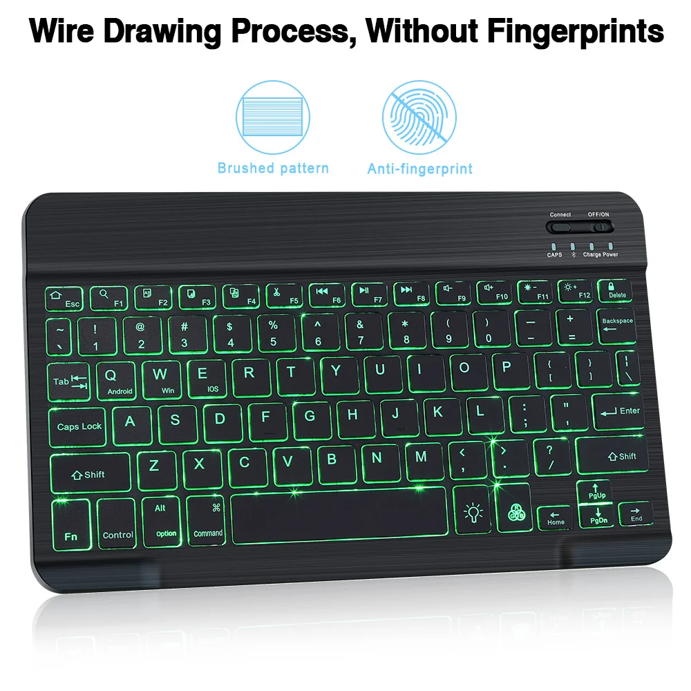 Bluetooth клавиатура и мышь, RGB, перезаряжаемый, беспроводной, испанский, русский, подсветка, планшет, iPad, ноутбук