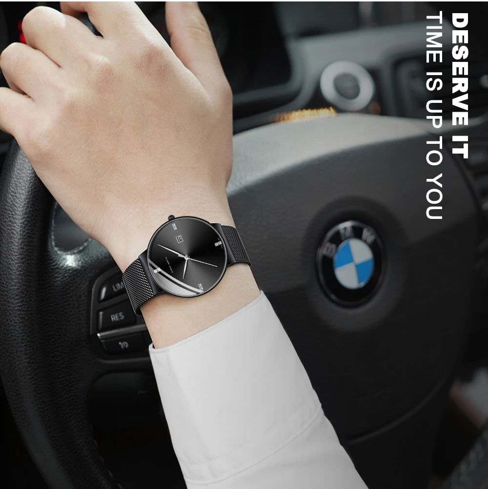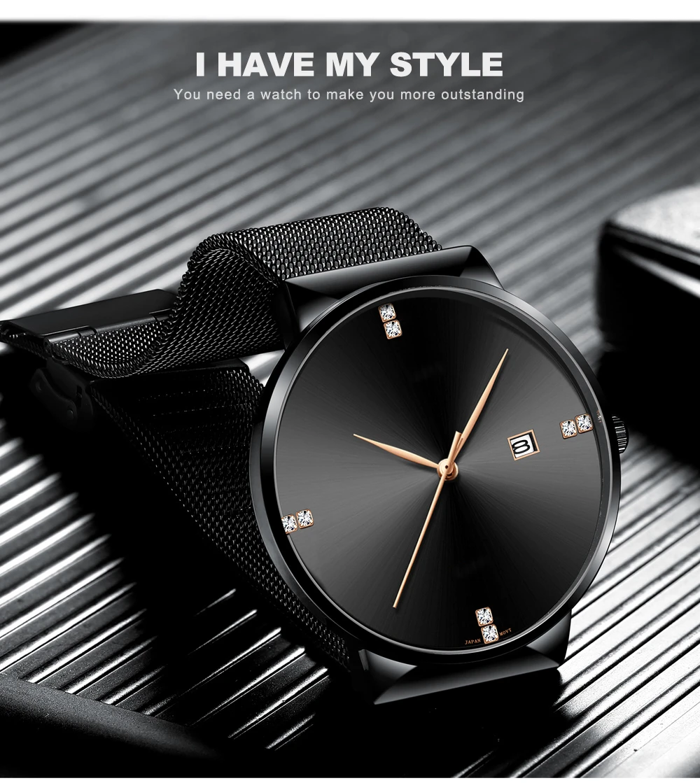 Часы наручные мужские с японским кварцевым механизмом, простые ульт...
