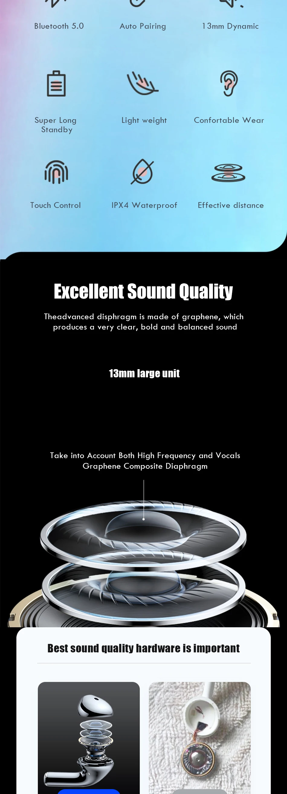 Character 1Bluetooth V5.0 + Touch Control + Auto Pairing