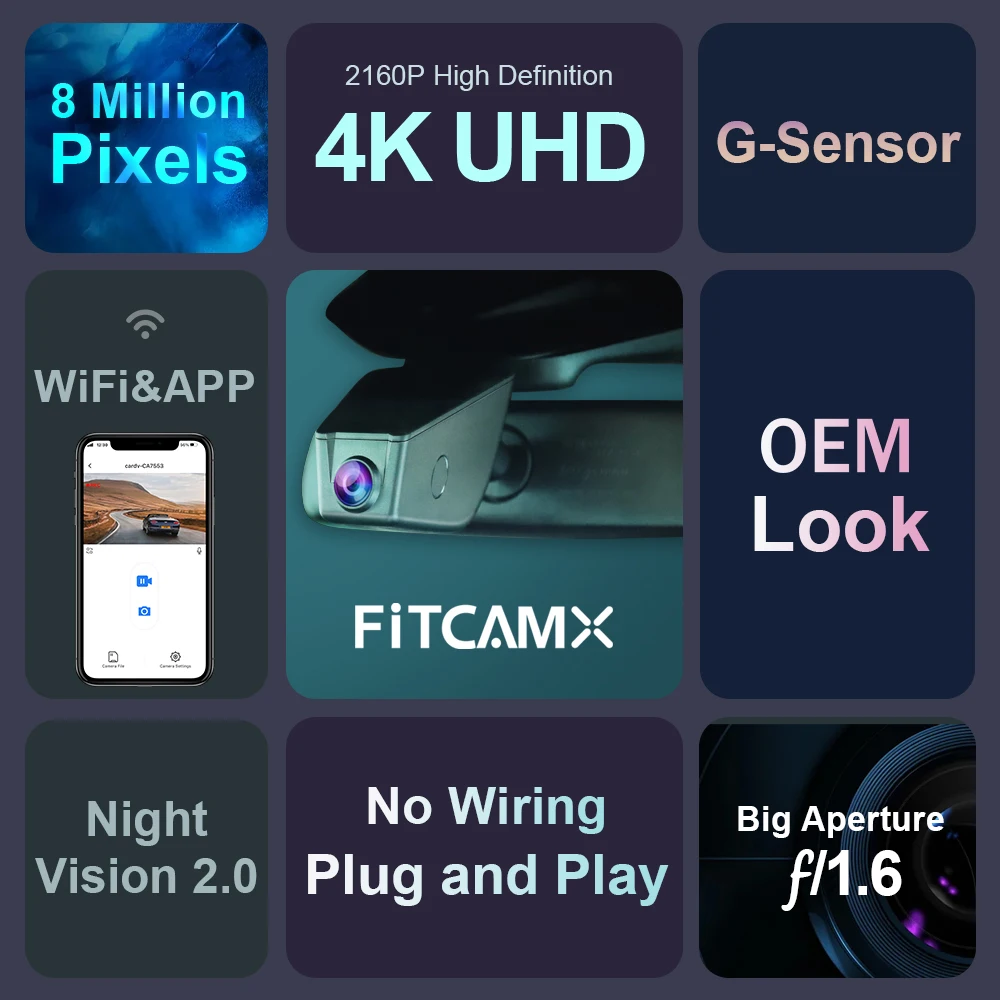 Автомобильный видеорегистратор для Ford Escape 2021 2022, видеорегистратор FITCAMX 4K для Lincoln Aviator Nautilus Navigator Corsair 2019 2020 2021 2022