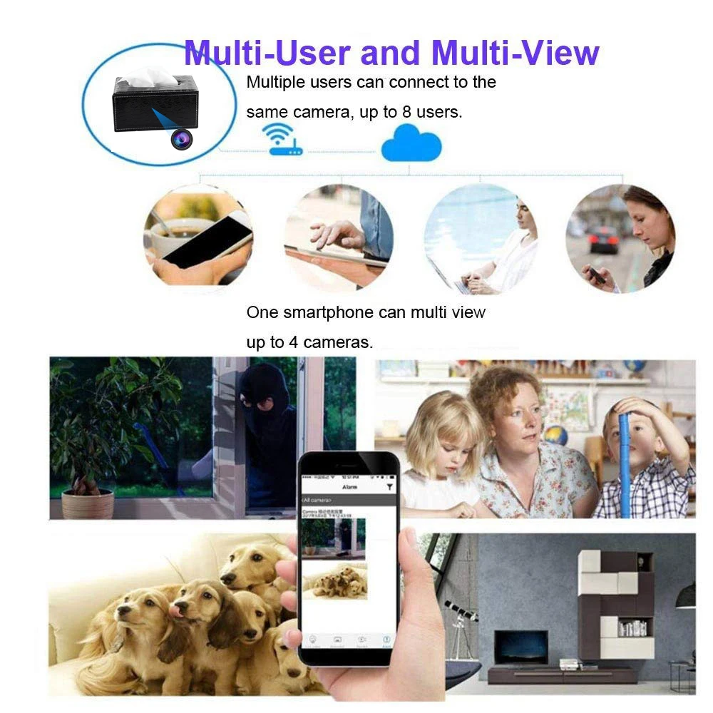 Несколько пользователей могут подключаться к одной камере, до 8 пользователейОдин Смартфон может просматривать до 4 камер.