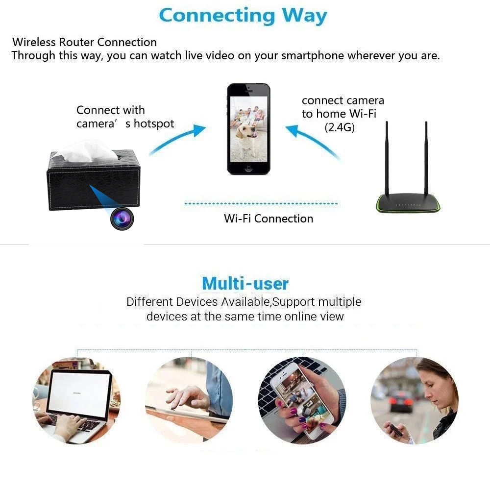 Вид близкого расстояния: камера с Wi-Fi точкой доступа, поддержка около 10 метров видео монитора для просмотра, глупой дыни типа загрузки до прямого видео SD карты. Мобильный телефон, подключенный к сигналу камеры, может быть возвращен, чтобы увидеть видео, затем загружать видео и удалять видео, нет необходимости вытаскивать карту памятиПульт дистанционного управления: камера подключена к окружающей сети Wi-Fi, откройте приложение на мобильный телефон, независимо от того, где вы можете в любое время смотреть в любом месте, без ограничения расстояния