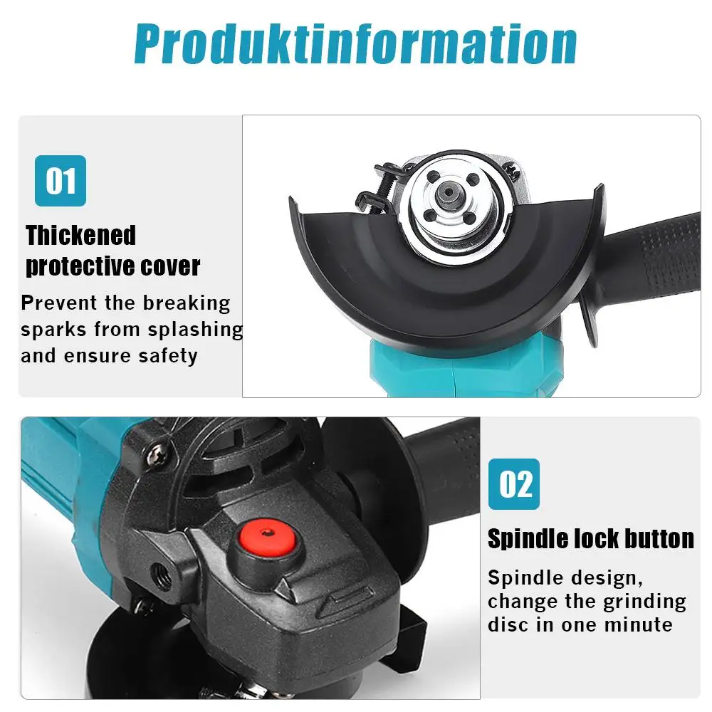 125100 мм бесщеточная беспроводная ударная угловая шлифовальная машина, 4 скорости, сделай сам, режущий станок, электроинструмент для Makita, только батарея 18 в (инструмент)
