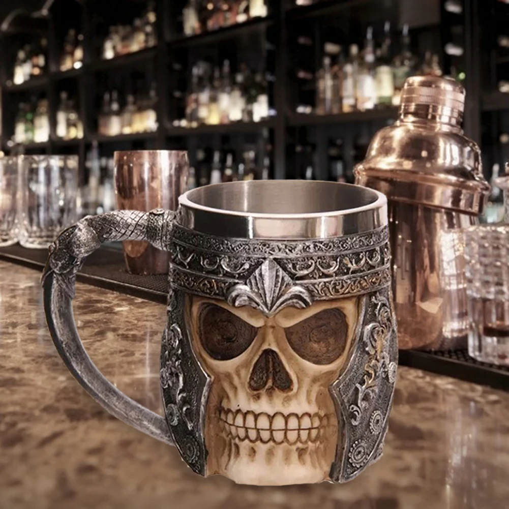 Череп Рыцарь Хэллоуин фестиваль Атмосфера для чая, кофе, пива креативная кружка викинга ретро из смолы нержавеющей стали для паба бара офиса украшения