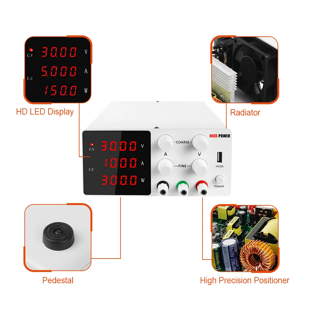 Лабораторный Регулируемый источник питания постоянного тока 30 в 10 А USB Цифровой настольный источник питания импульсный регулятор напряжения белый черный цвет