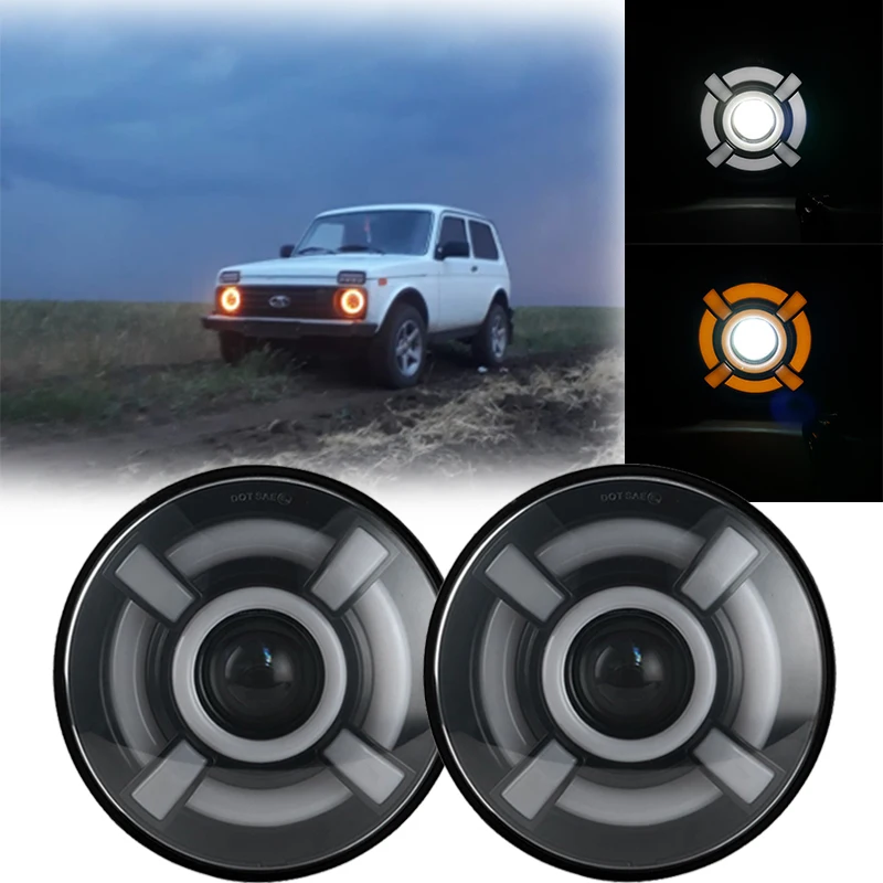 Фары головного света, 7 дюймов, светодиодные, с ближнимдальним светом, ДХО, ангельские глаза для внедорожников, Lada Niva Urban, Jeep Wrangler, Suzuki Samurai, 2 шт.