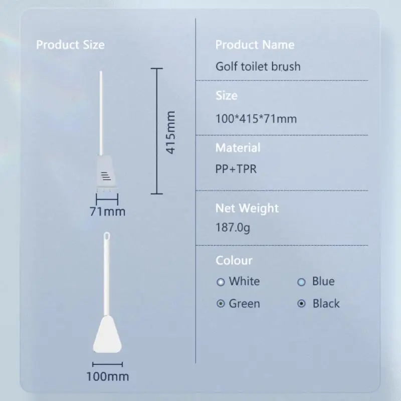 Уникальный дизайн головки для гольфа, и каждый угол подходит для унитаза, не оставляя слепых пятен. Можно глубоко очистить любой уголок унитаза. Легко чистить углы и темные пазы.