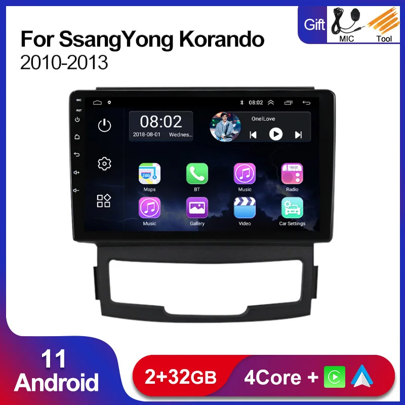 Автомагнитола 9 дюймов, мультимедийный видеоплеер для SsangYong Korando Actyon 2011 2012 2013 Android 11 2G + 32G 2.5D 2DIN GPS-навигация WIFI