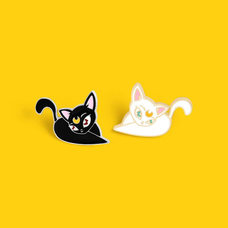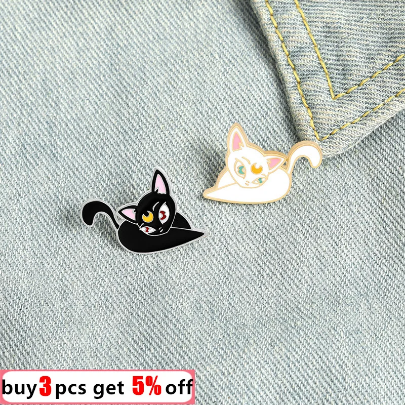 Moon Hare аниме Кот мультфильм эмаль брошь черно-белое животное милые заколки подарок для друзей пользовательские ювелирные изделия рубашка значок оптовая продажа