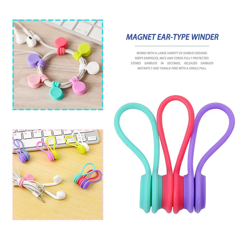 3 шт., мягкий силиконовый Магнитный органайзер для намотки кабеля, держатель для хранения наушников, зажимы для намотки кабеля для наушников для кабеля передачи данных