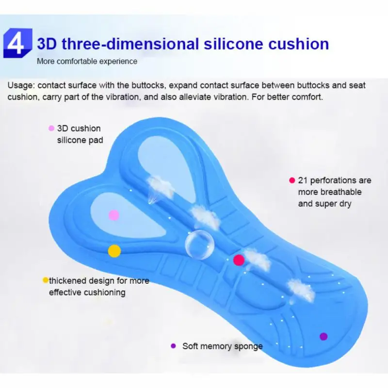 Высокая лайкра ткань: Основная ткань велосипедных брюк изготовлена из импортной лайкровой ткани, которая впитывает влагу и быстро сохнет, гладкая на ощупь, с высокой эластичностью и отличной устойчивостью, которые могут поддерживать форму брюк в наибольшей степени, против морщин и износостойкости, что дает вам лучший опыт ношения.