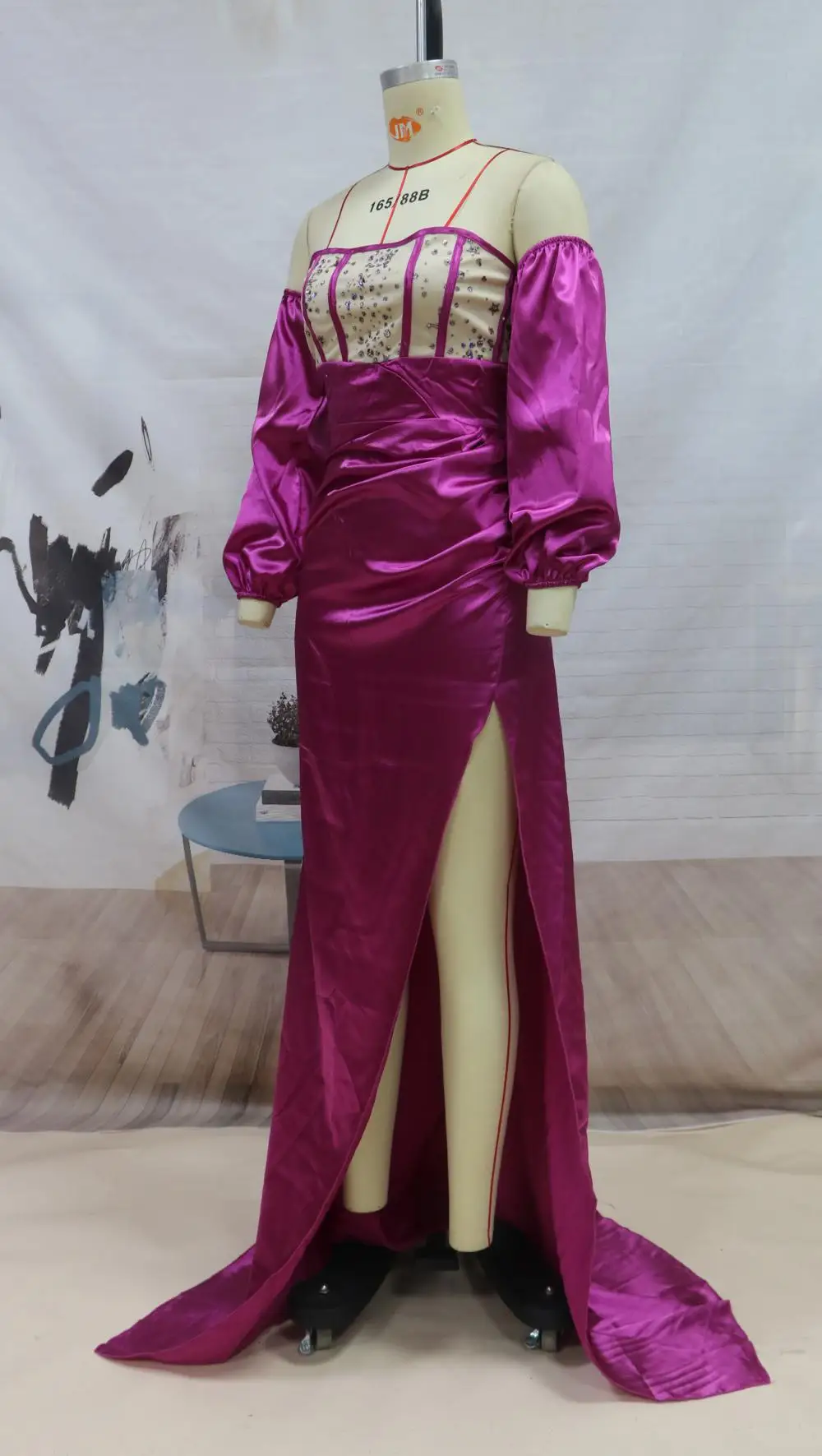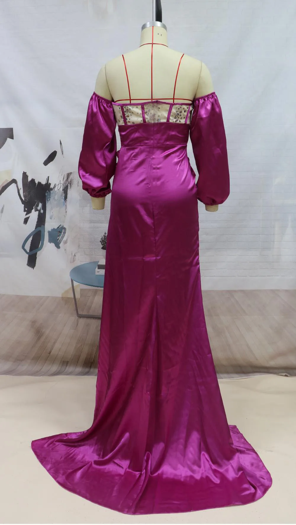 Женское длинное атласное вечернее платье, платья для вечерние, сексуальное женское платье с разрезом, женское элегантное фиолетовое платье со складками, платья 2022