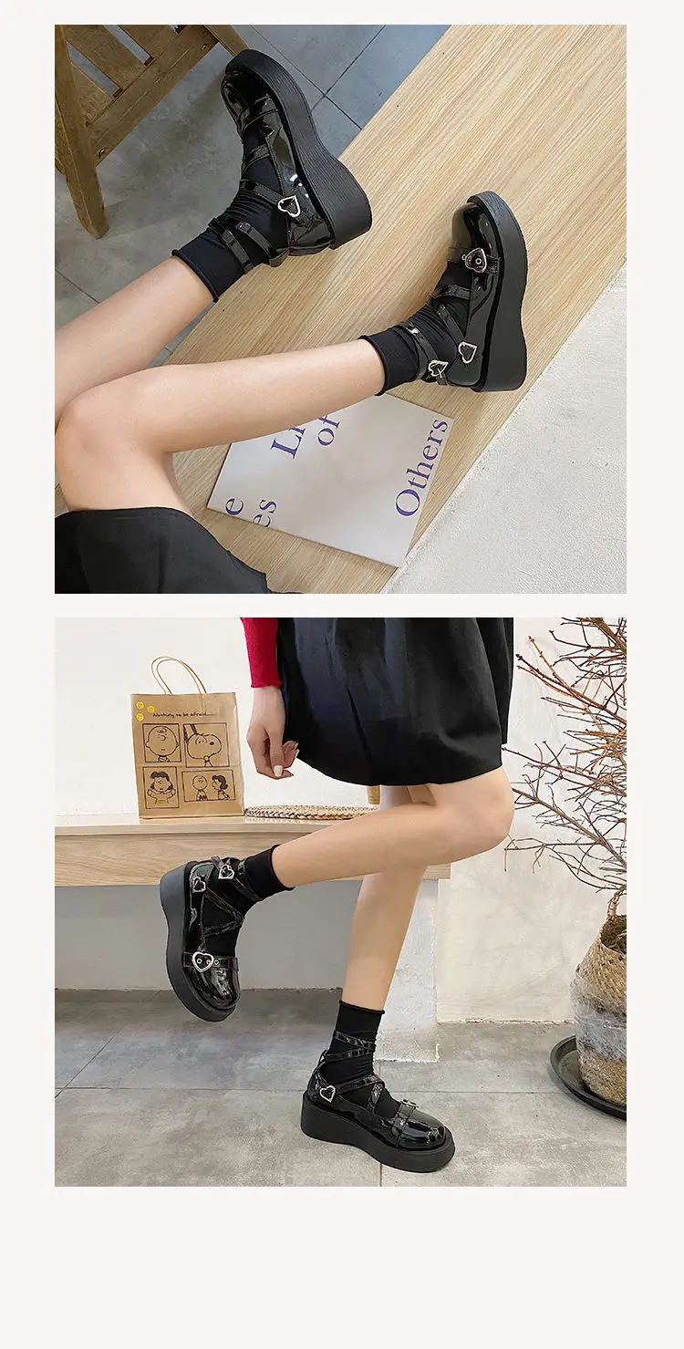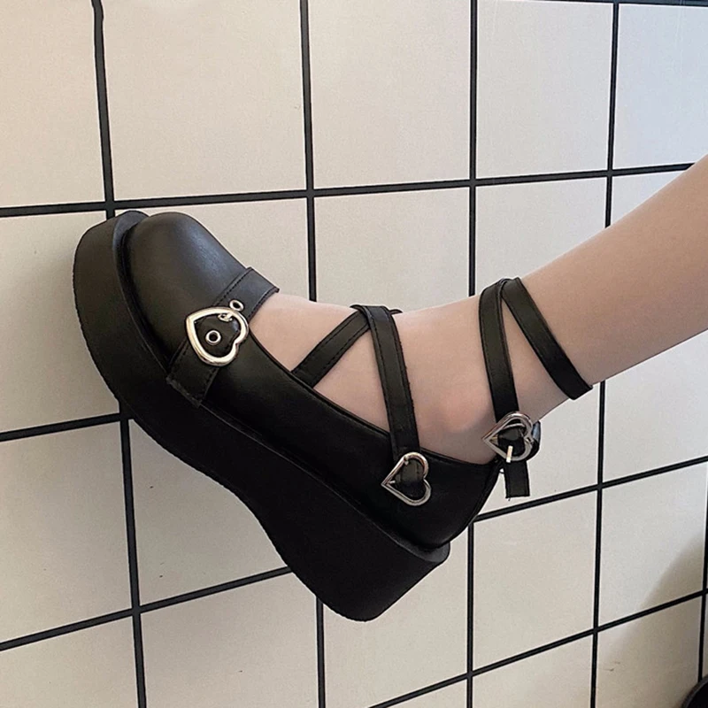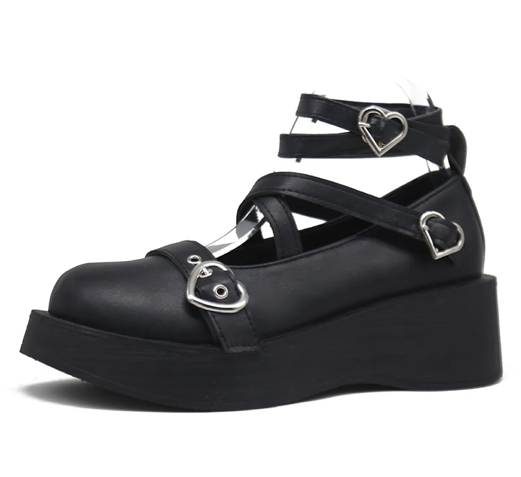 Туфли женские на платформе и толстом каблуке, милая обувь Лолита, туфли с перекрестной шнуровкой, обувь для косплея, Мэри Джейн, черные