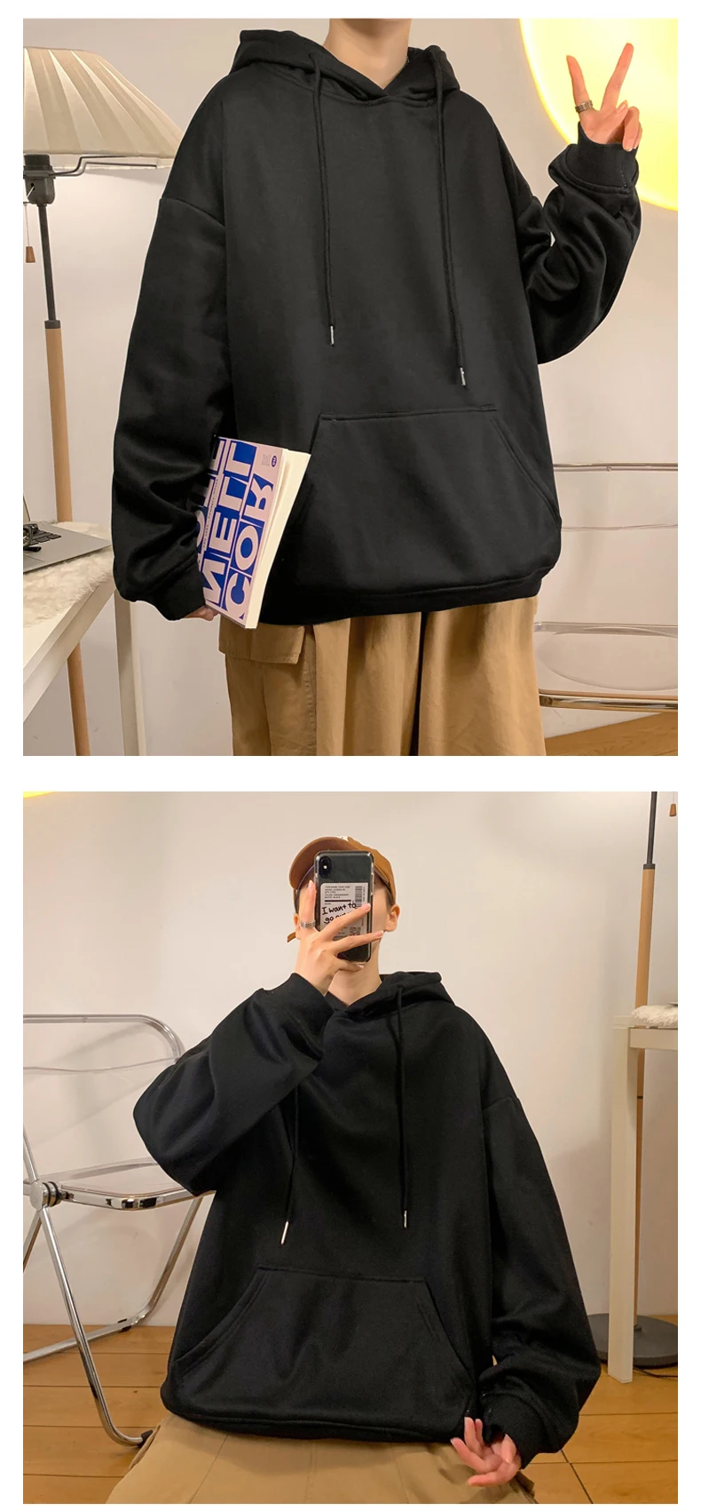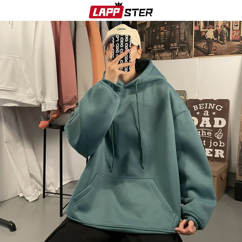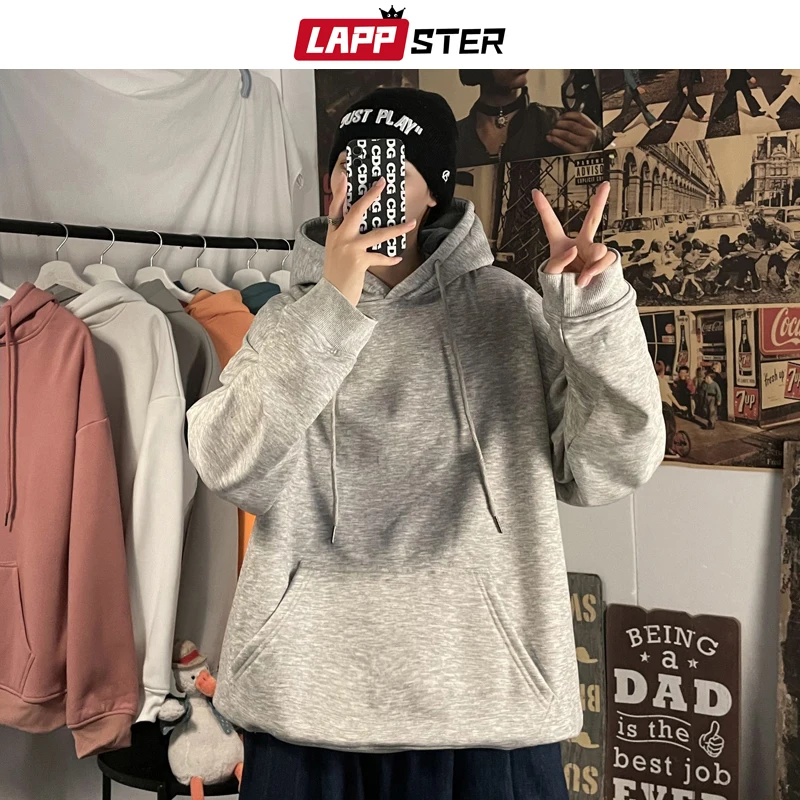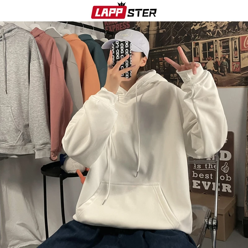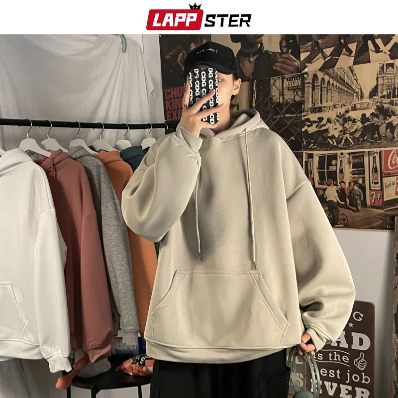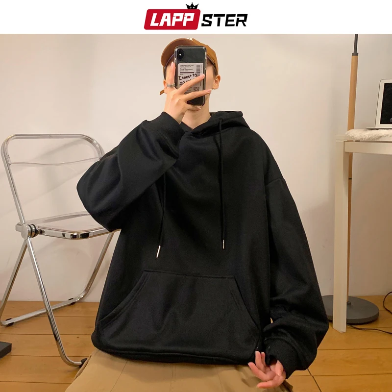 Толстовка LAPPSTER мужская с капюшоном, однотонная свободная кофта в стиле харадзюку, цвет оверсайз, 2022