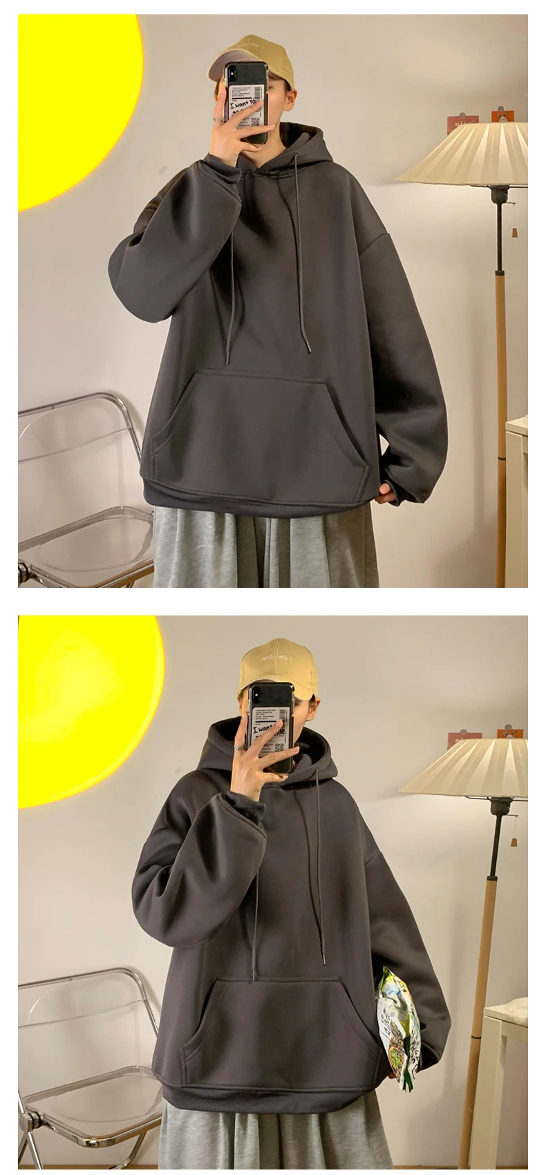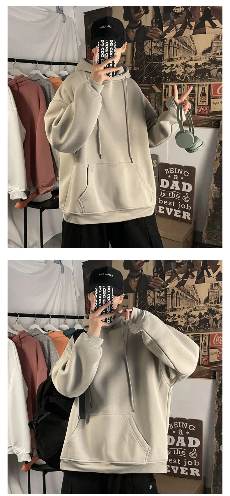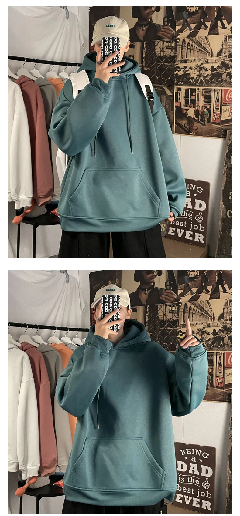 Толстовка LAPPSTER мужская с капюшоном, однотонная свободная кофта в стиле харадзюку, цвет оверсайз, 2022