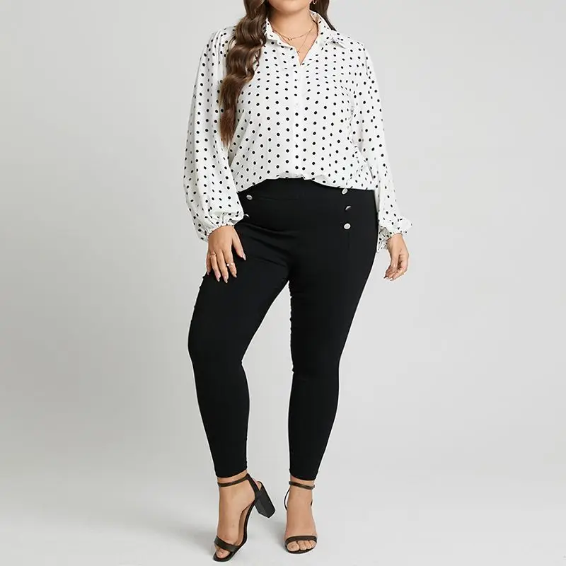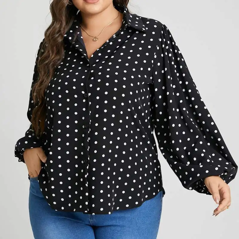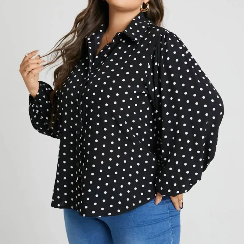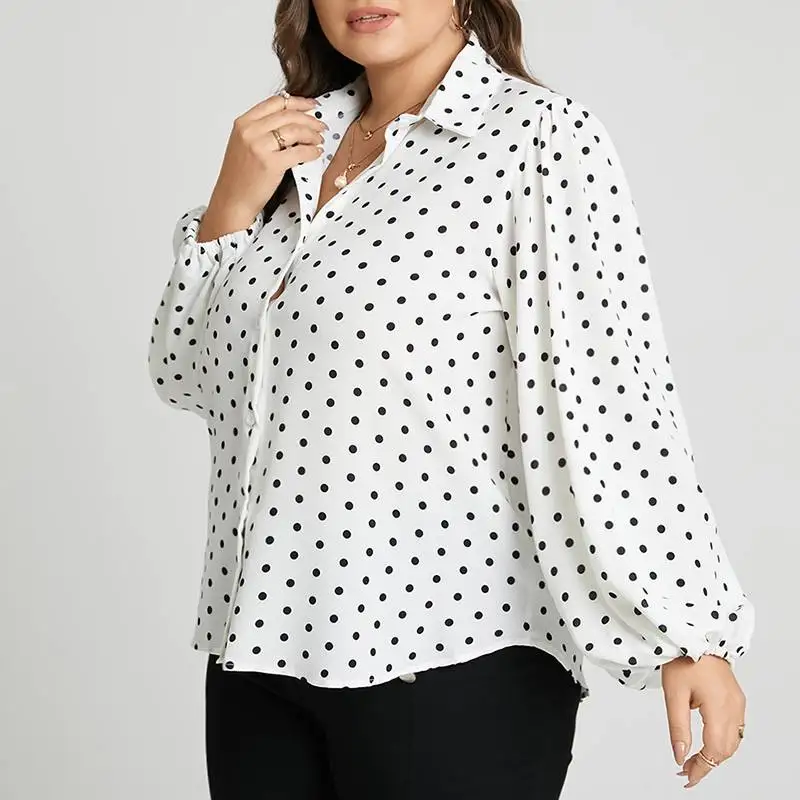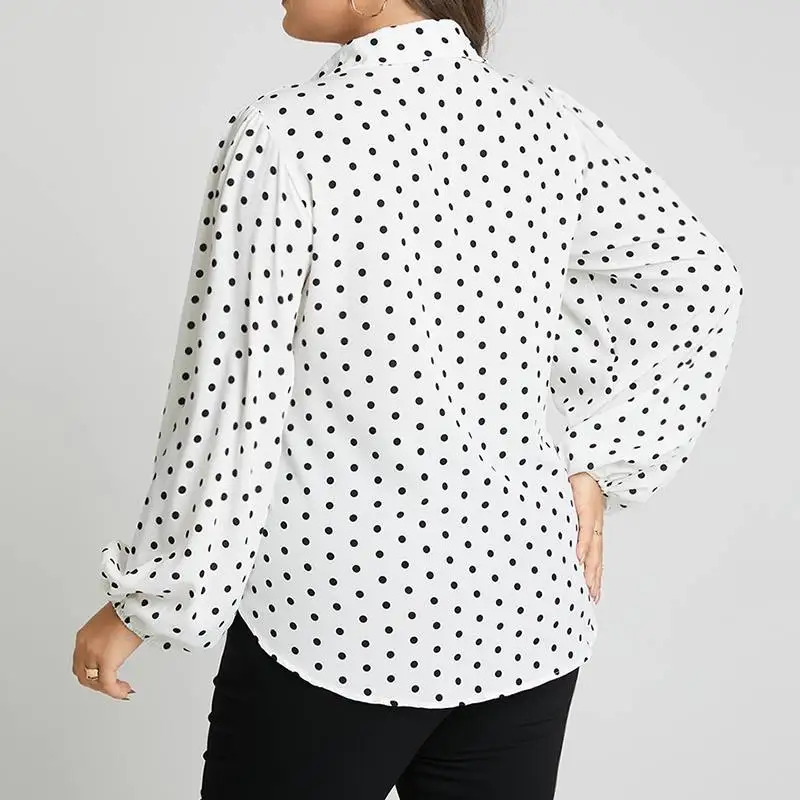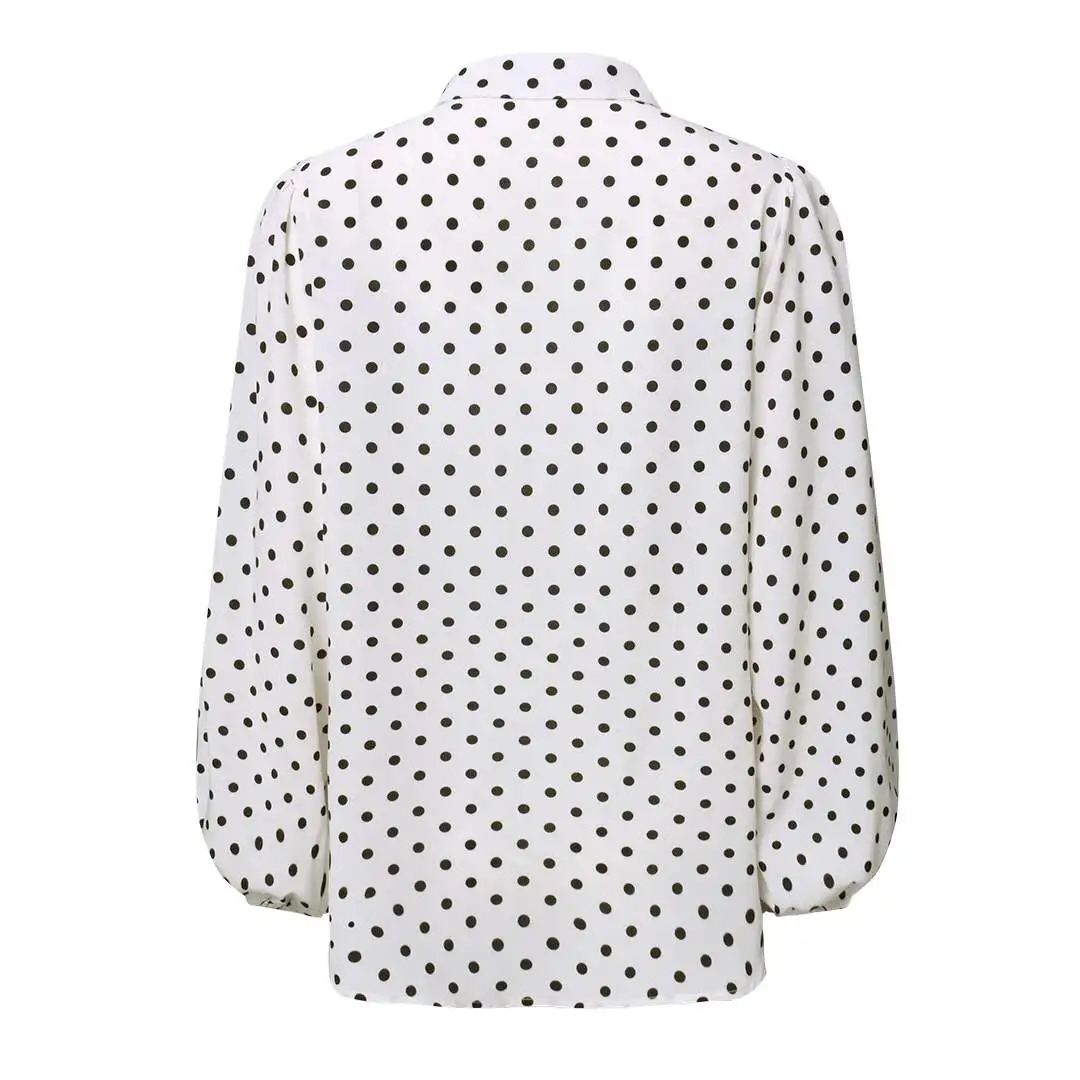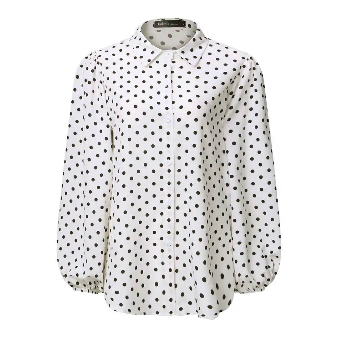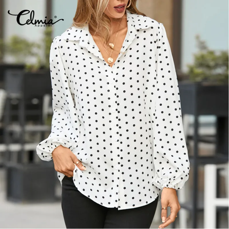 Женские блузки большого размера Celmia, Повседневная рубашка в горошек с отложным воротником, модные офисные женские блузы, топы с длинным рукавом-фонариком, туника, 2022