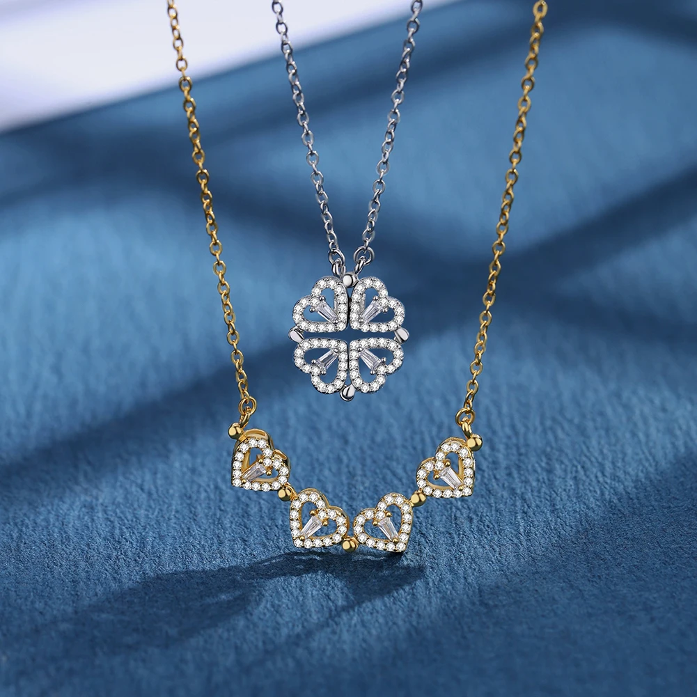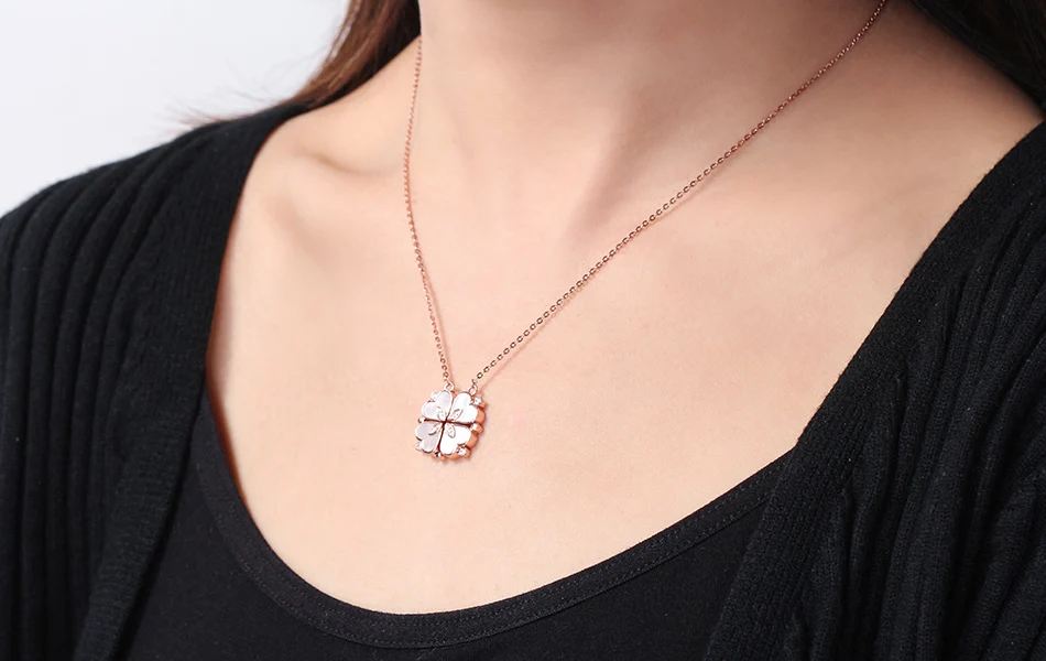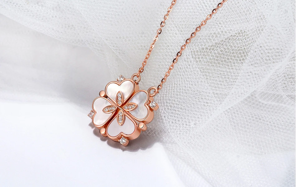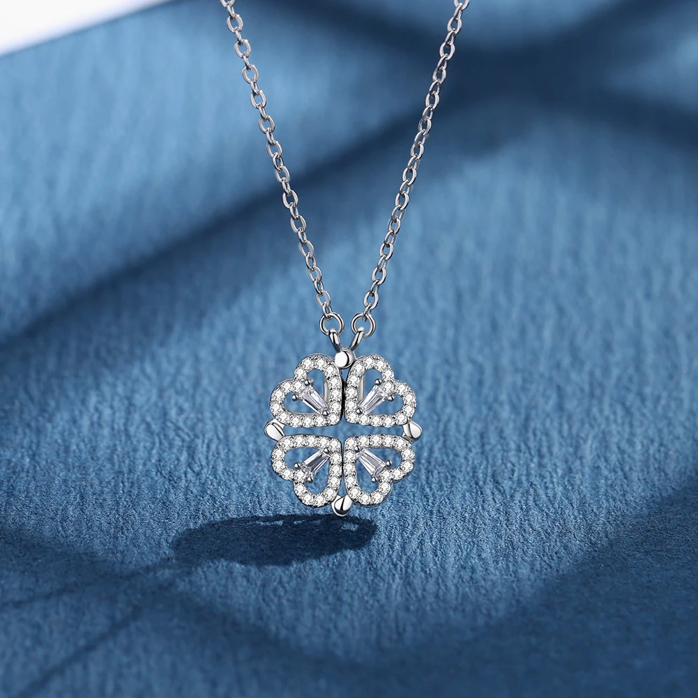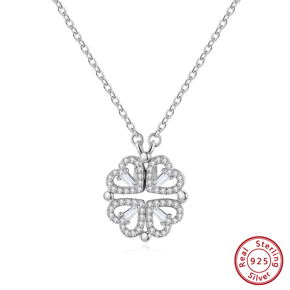 Женское колье из серебра 925 пробы с кулоном в виде клевера