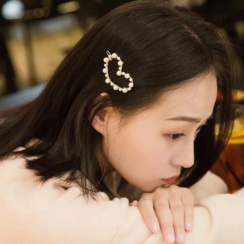 Шпилька для волос металлическая в форме сердца с жемчугом