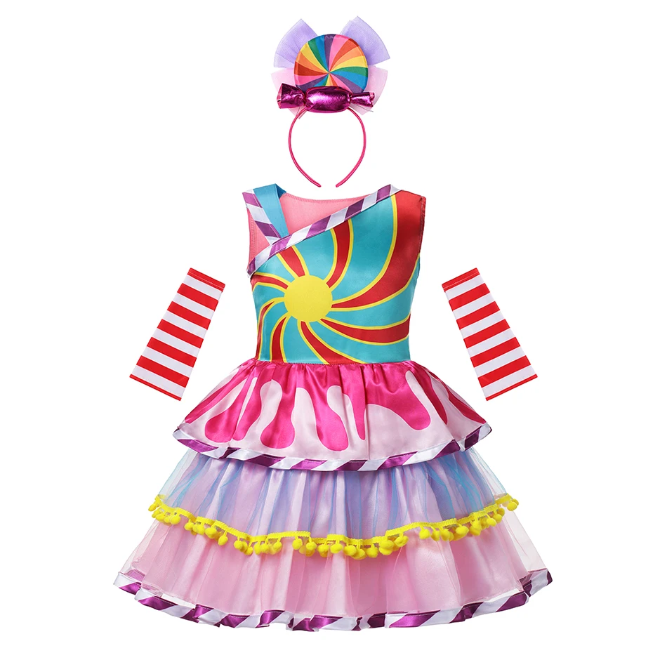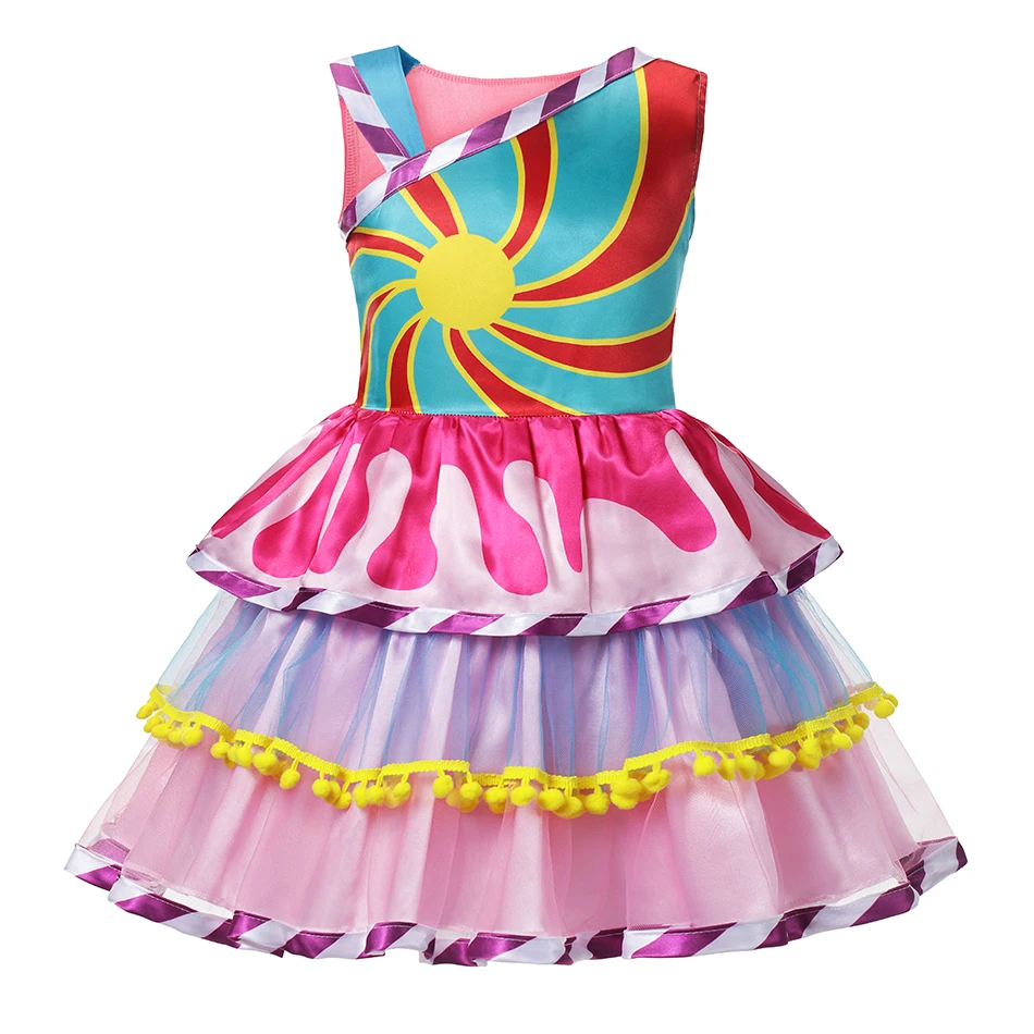 Пурим, конфетное платье для девочки, карнавал, маскарадный Детский костюм, леденец, цветок, единорог, радуга, свадебное платье, платье для вечеринки, день рождения, косплей, бальное платье