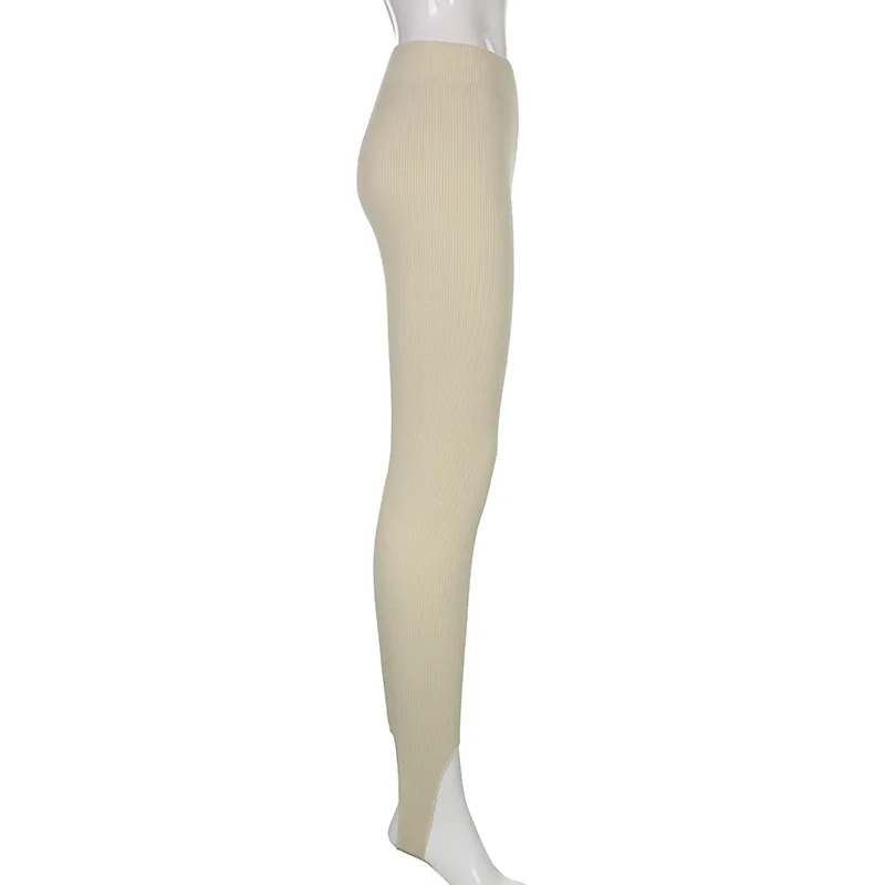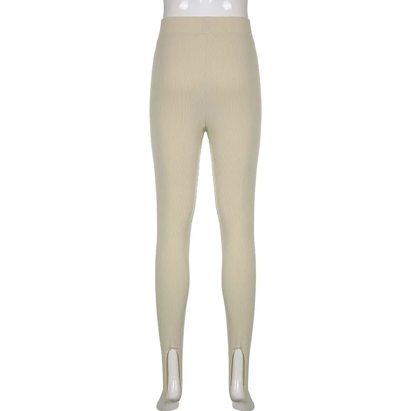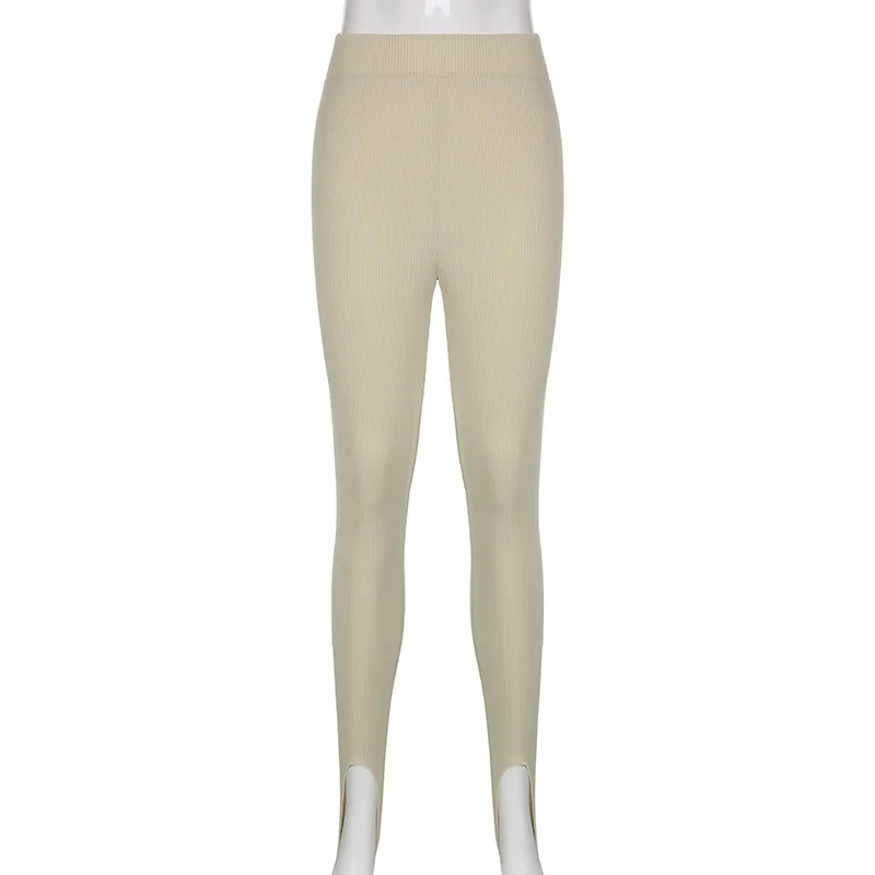 Tossy бежевые ребристые трикотажные леггинсы для женщин с высокой талией, хлопковые базовые штаны для фитнеса, повседневные Весенние Новые Универсальные женские обтягивающие леггинсы