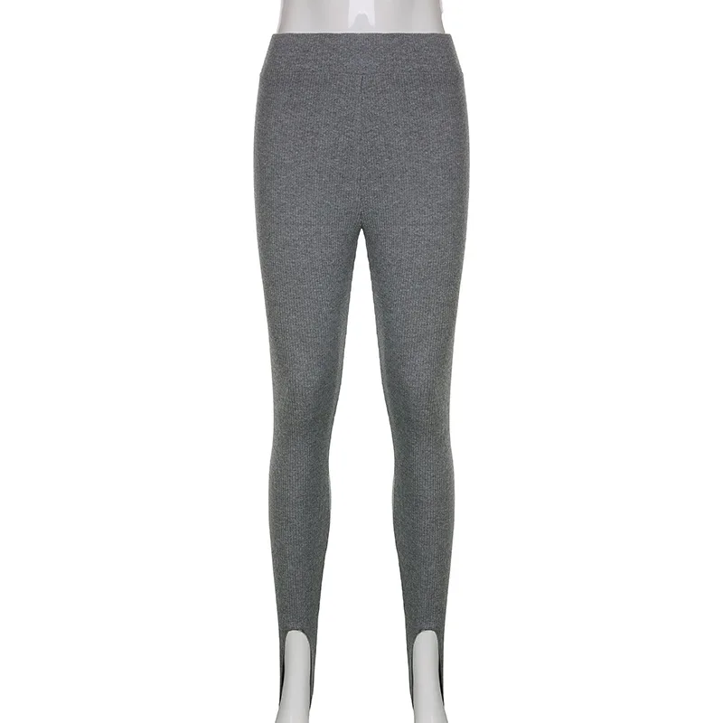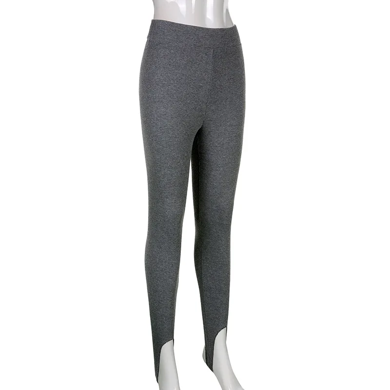 Женские трикотажные леггинсы в рубчик, с высокой талией