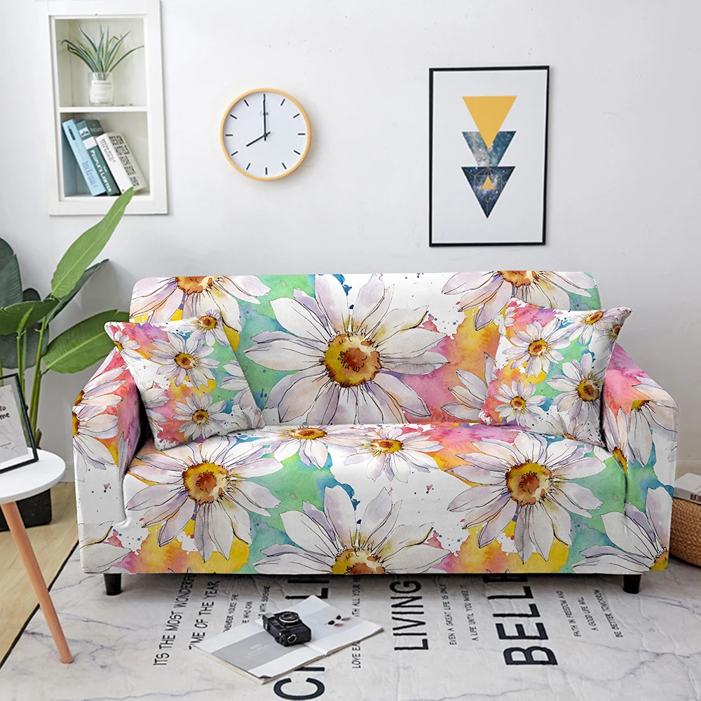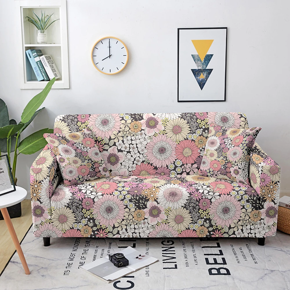 Чехол для дивана с цветочным узором, эластичный растягивающийся чехол из спандекса для гостиной, защита от грязи