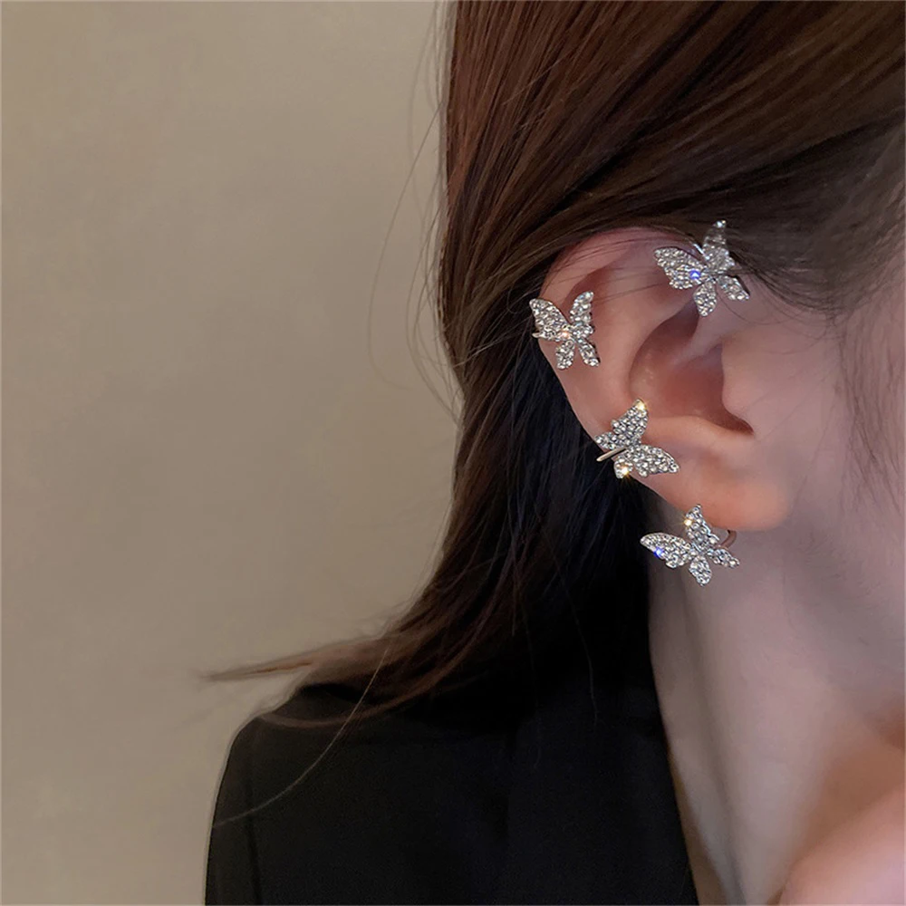 Клипсы для ушей в стиле панк с кристаллами бабочки без пирсинга для...