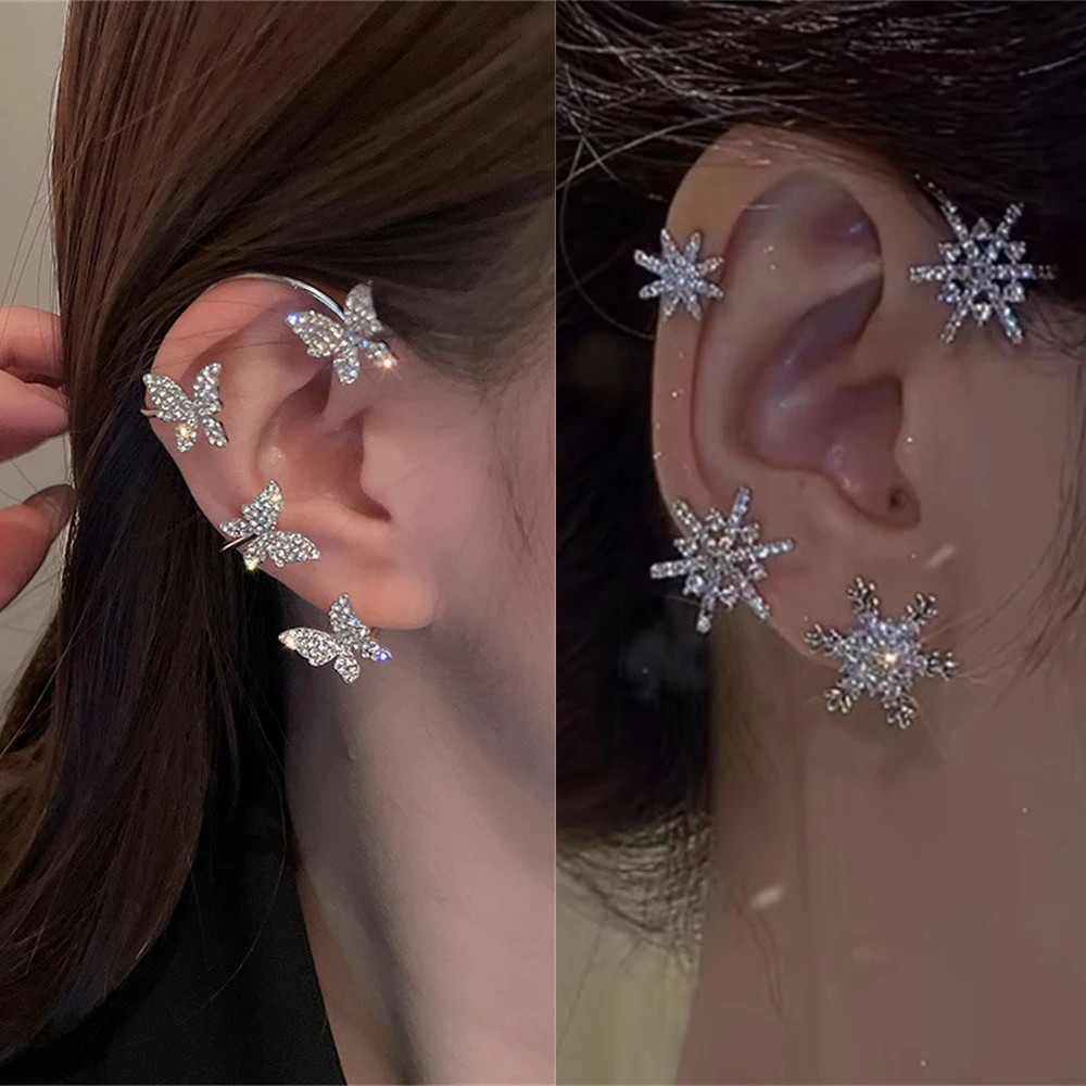 2022 модные блестящие серьги в виде снежинки и бабочки для женщин, клипса для ушей со звездой из циркония, без пирсинга, манжеты для ушей, заушники, ювелирные изделия, свадебный подарок