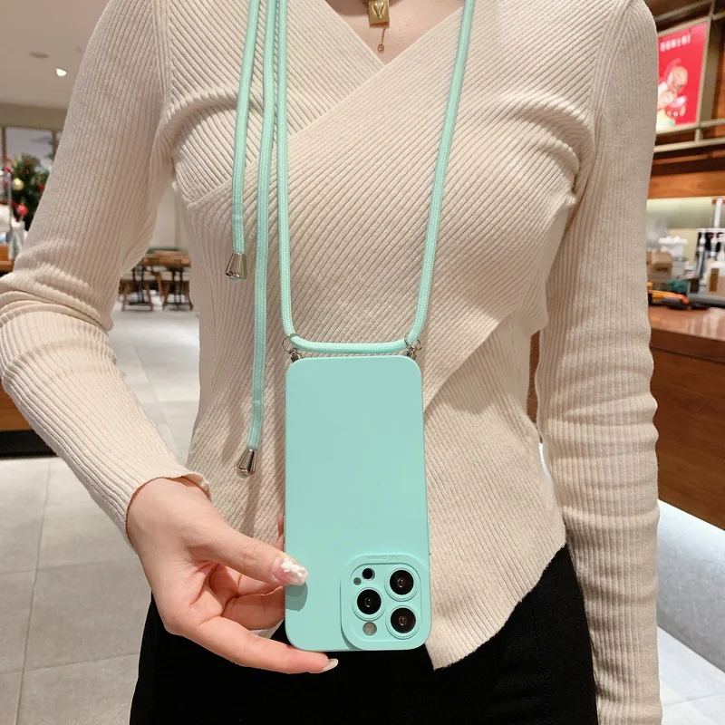 Силиконовый чехол с жидким ремешком для iPhone 13 Pro Max 12 11 Pro XS XR X 8 7 Plus
