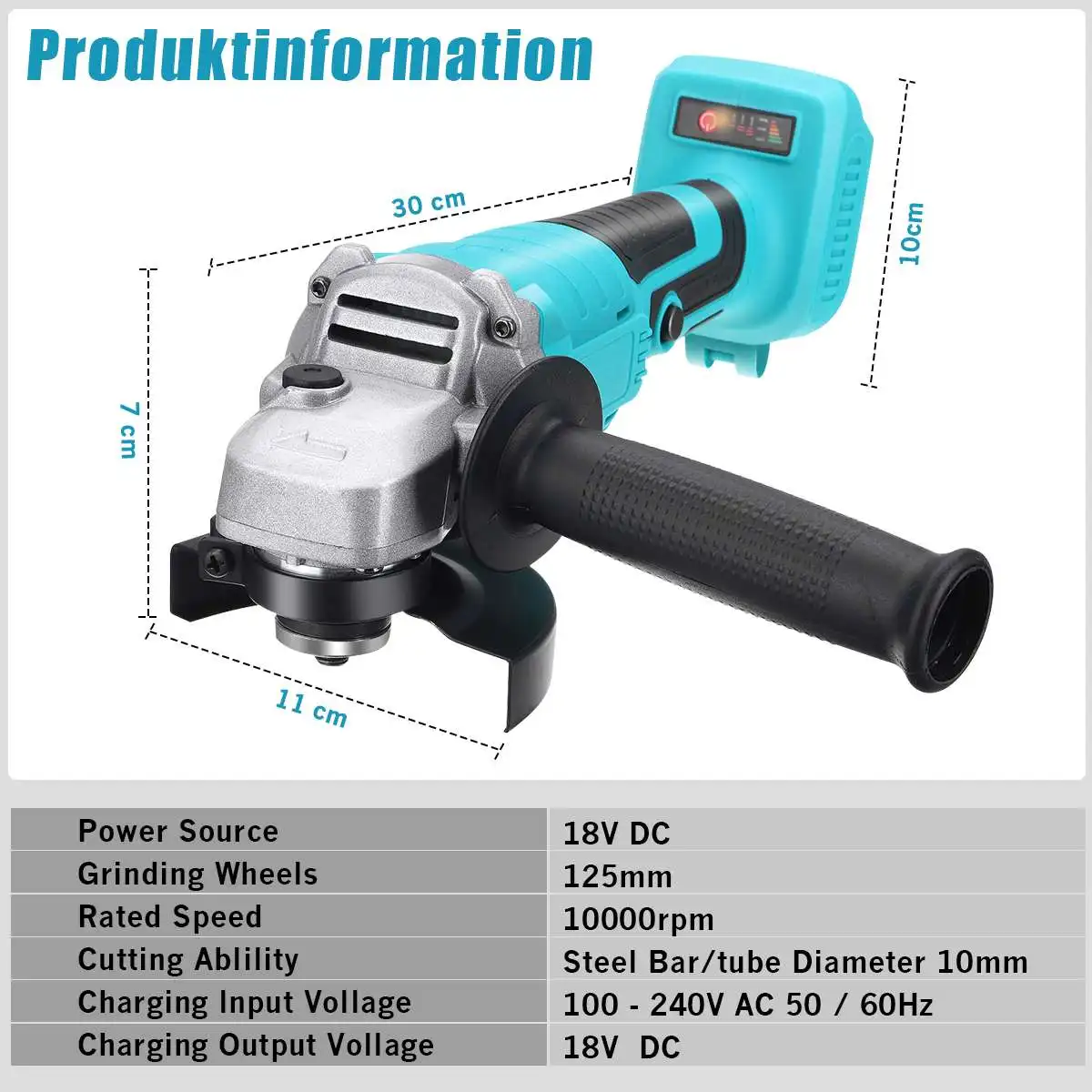 Беспроводная ударная угловая шлифовальная машина, 18 в, 125100 мм