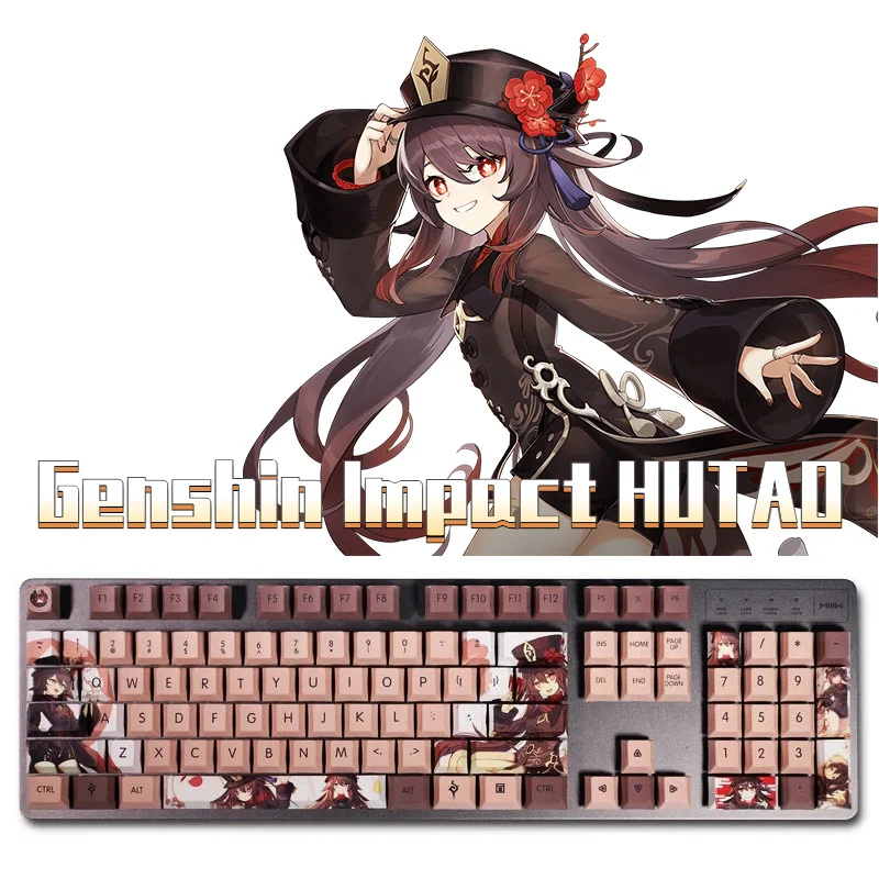 Колпачок для клавиатуры Genshin Impact HUTAO Key Cap s, колпачок для клавиатуры с персонажами игры s PBT, колпачок для механической клавиатуры с вишневым профилем, 108 клавиш