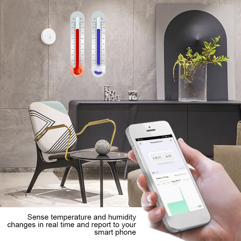 2. Восприятие температуры и влажности в реальном времени и отчет в реальном времени для ваших смартфонов с поддержкой приложения smart Life Tuya. Просмотр истории записи в приложении для интеллектуального контроля температуры и влажности вашего дома. Контролируйте температуру и влажность вашего дома независимо от того, где вы находитесь.