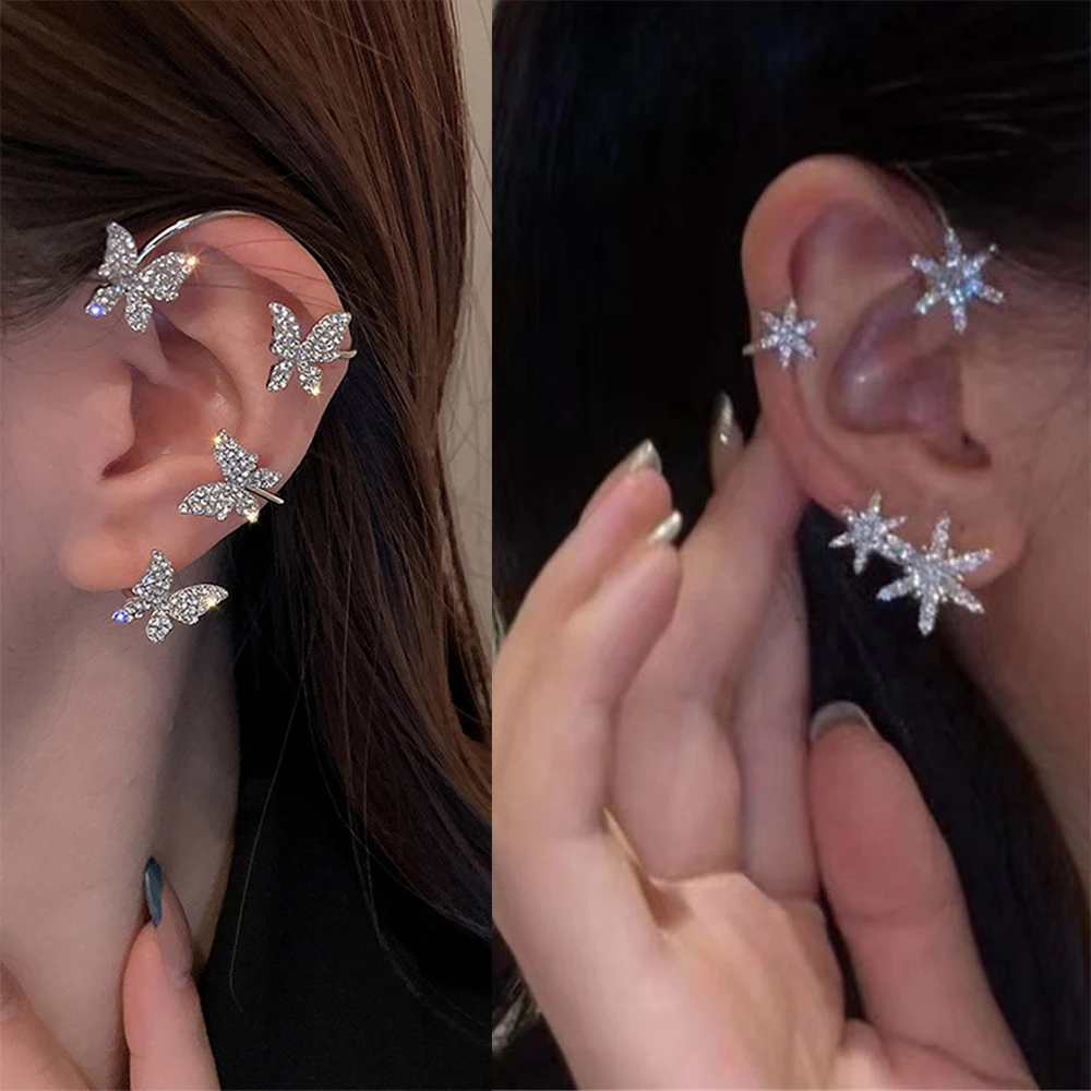 2022 Новые блестящие циркониевые серьги-зажимы в виде бабочки для женщин, модные серьги-крючки без пирсинга, серьги-крючки для вечеринок, украшения для вечеринок, подарки