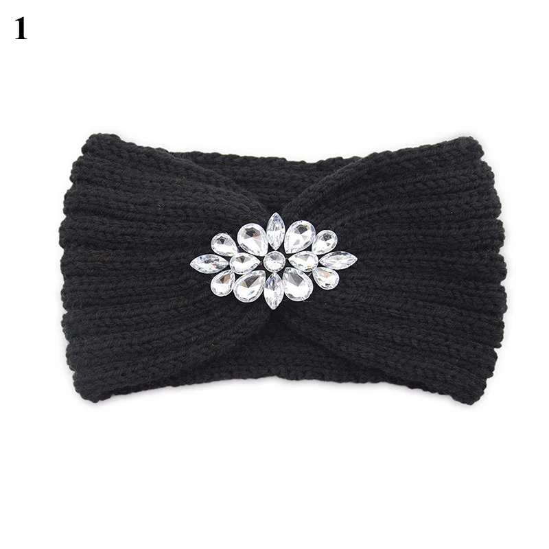 Зимняя женская регулируемая повязка на голову с прозрачными кристаллами и цветами, вязаная крючком повязка на голову, обогреватель для ушей, аксессуары
