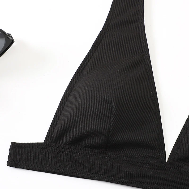 Купальник-бикини в рубчик с завышенной талией, женский купальник пуш-ап, 2022, пикантный бикини с V-образным вырезом, однотонный купальный костюм, комплект бикини, пляжная одежда, Прямая поставка
