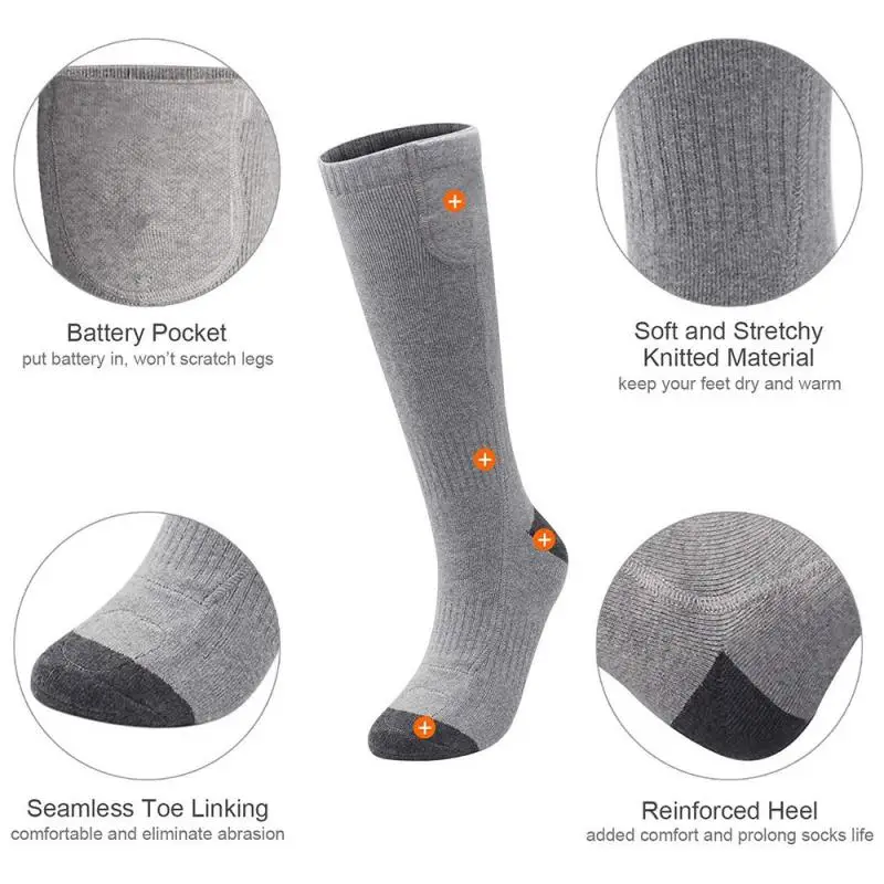 -Нагревательный элемент: нагревательный элемент находится внутри носка. Специально разработанный карман банка питания безопасен и прост в переноске.