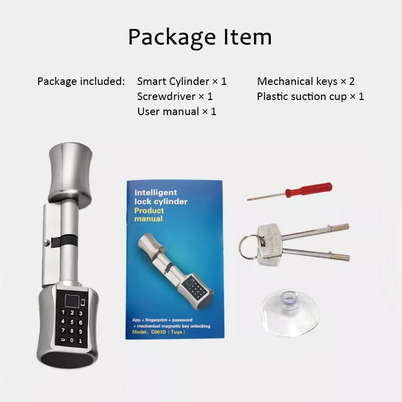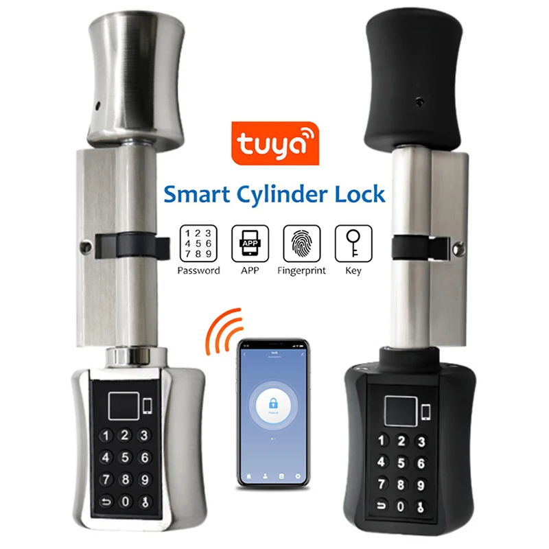 Умный цилиндрический замок со сканером отпечатков пальцев, пароль, биометрическая электронная дверная фурнитура, приложение Tuya с кодовой цифровой клавиатурой для дома и склада