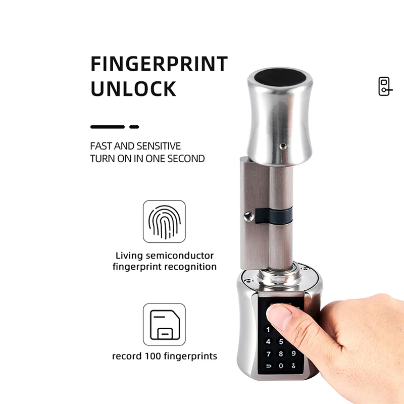 Отпечатков пальцев Смарт цилиндрический замок Пароль биометрический электронный дверной аппаратный Tuya приложение с кодом цифровой клавиатуры для дома Airbnb