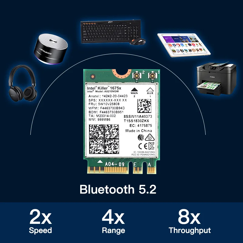 Сетевая карта AX210 M.2 NGFF, 5374 Мбитс, Killer 1675X, Wi-Fi, 6e, беспроводной адаптер Bluetooth 5,2, Intel AX210NGW для Windows 10 11