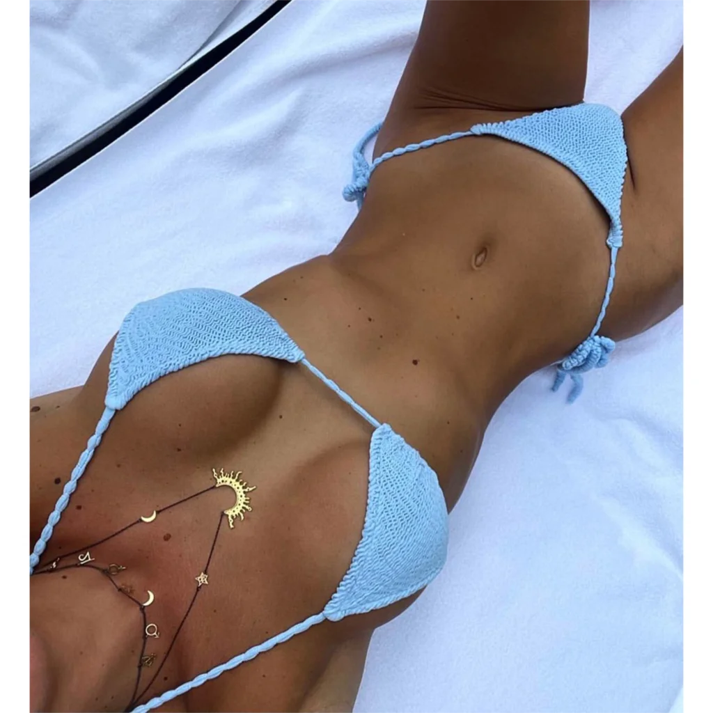 Сексуальный треугольный комплект бикини 2022, Женский однотонный ре...