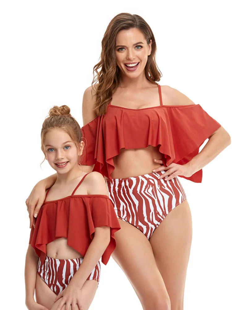 Купальник из двух частей для родителей и детей, купальные костюмы д...