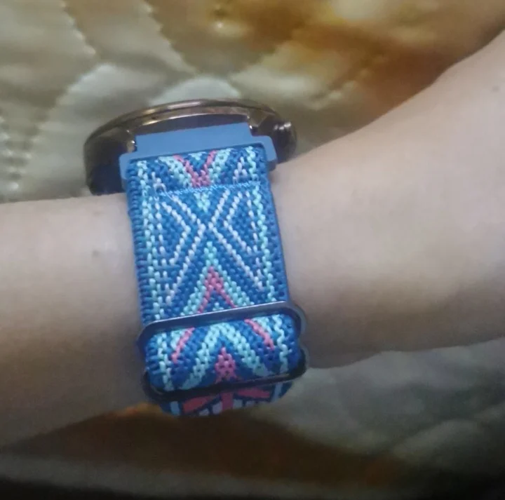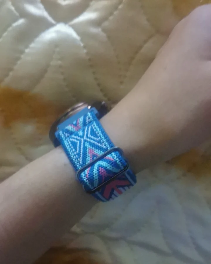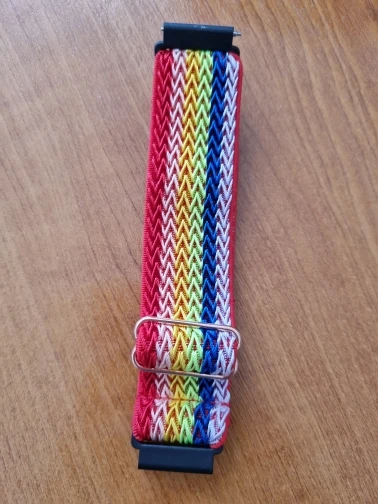 Совсем не то, что я ожидал... На фото это выглядит яркими цветами, и то, что вы получаете, имеет пастельный и очень рассеянный воротник. Система крепления к часам разобрана, и вы должны поставить их самостоятельно, легко. На самом ремешке это эластичная резина, которую вы регулируете, но которая Постоянно застревает, поэтому носить ее-это трюк.