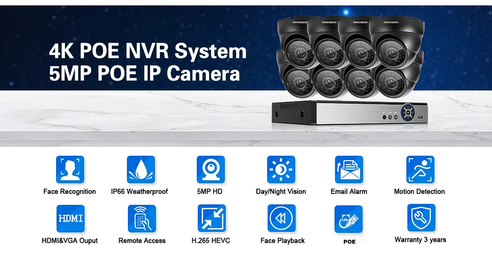 POE NVR FeaturesHDMI&VGA output / Motion detection/email Alert..