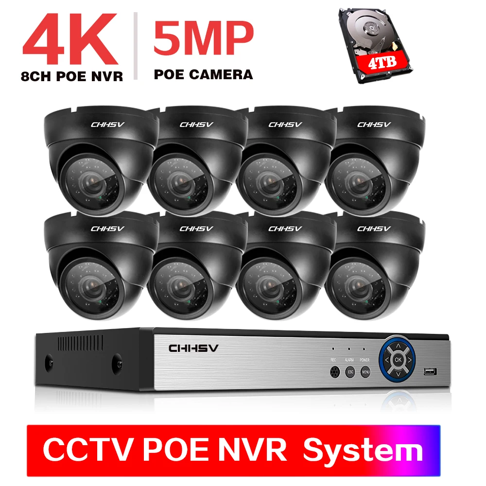 Система видеонаблюдения H.265, 8 каналов, 4K, 8 Мп, 5 Мп, POE, NVR, ИК купольная IP-камера для помещений и улицы, P2P