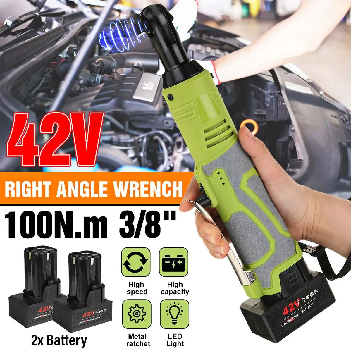 Особенности:-100 нм большая система крутящего момента, высокая скорость, мощная мощность и эффективная защита от повреждений машины, вызванных чрезмерной температурой двигателя.-R/F положительный и отрицательный дизайн. R/F положительный и отрицательный дизайн, легко разбирается.-Батарея lith ium большой емкости, легкая зарядка и длительный срок службы батареи.-3/8 "квадратная головка, 3/8 марганцевая стальная шпиндель. Металлические шарики точно зажимаются, и рукав можно снять без снятия.-Ширина носа 3 см. Ширина носа составляет всего 3 см, подходит для небольшого пространства, электрического предварительного затягивания и ручного армирования.-Светодиодный рабочий светильник дизайн. Светодиодный рабочий светильник автоматически светильник s во время работы, что делает его легко работать в темное время суток-Широкий спектр применения. Установка ферменной конструкции, строительство свадебной сцены, ремонт автомобилей, механическое обслуживание.Характеристики:Название: гаечный ключ с прямым угломЦвет: зеленый + серыйНапряжение зарядки: Универсальное напряжениеМаксимальный крутящий момент: 100 Н. МНапряжение батареи: 42 вВилка: вилка стандарта СШАРазмер головки: 3/8 "(10 мм)Угол: 90 °Размер изделия: 310x70ммИспользование: установка ферменной конструкции, сценическая конструкция, ремонт автомобилейПримечание:1. Замеры сделаны вручную, поэтому возможны 0,5-1 см из-за различий в связи с тем, что измерения выполнены вручную.2. В связи с использованием разных по светильник экране монитора фактический цвет товар точно такой же, как и цвет изделия на фото может быть s светильник ly отличается из-за характеристик монитора компьютера.